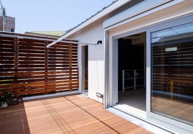 その街中のおよそ30坪の土地、北側は鋳型工場。 この家は、この街でごくありふれた環境にありながら、そこにふりそそぐ太陽の光で 家族4人の電気をまかない、湯をつくり、少しの工夫をし楽しみながら、 身の丈にあった暮らしをする、そんな住まいです。