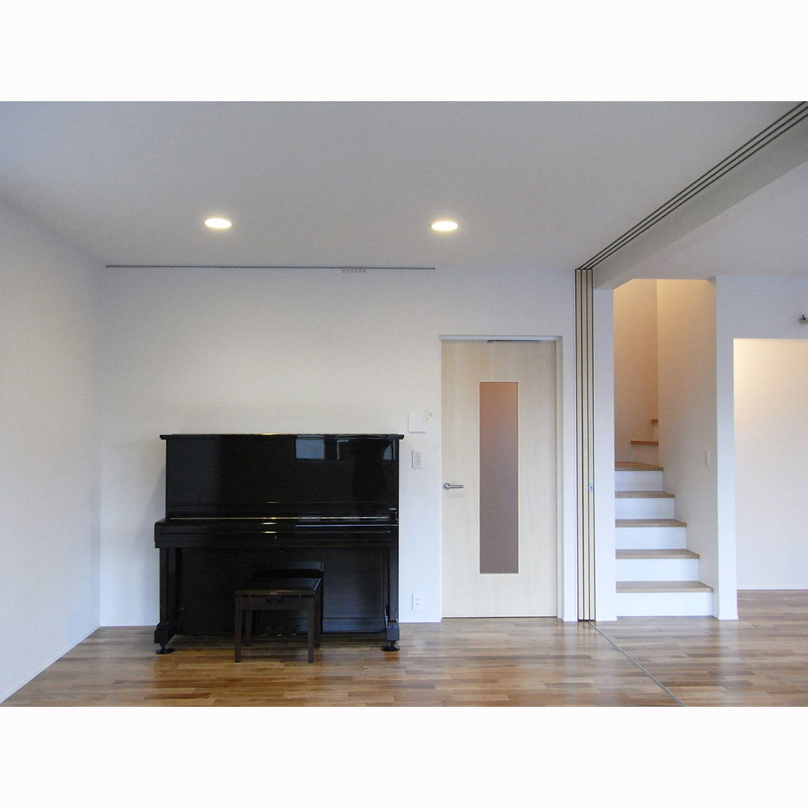 築40年程の木造2階建で、当初は道路側を若夫婦、奥をその両親が暮らす2世帯住宅であった。その後、夫婦の子供達も独立し、両親も他界され、奥の一角は倉庫同然、広い屋敷に夫婦2人という状況であった。ところが、長男夫婦は共稼ぎで双子を授かり家事に追われる日々、一方両親は退職して間もない夫とピアノ教師を辞めることにした妻。彼らは老後は、長男夫婦をサポートすべく二世帯住宅にリフォームすることとした。工事は2段階で進められた。奥をまず親世帯のバリアフリーな住まいにリフォーム。生活スペースをこちらに移し、その後、空いた道路側のエリアを子世帯の住まいにリフォームした。全体スケルトンリフォームとされ、基礎の強化、壁の耐震化が図られ、工事終盤で起こった先の3.11震災にも頑強な住まいとなったことが実証された。