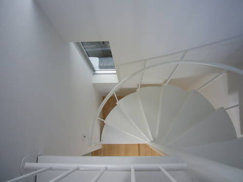 閑静な住宅地の20坪に満たない狭小地に建つ木造三階建て住宅です。 小さい住宅ながらも各階に収納スペースがあり、生活の中心であるリビング、ダイニングとキッチンを日当たりの良い2階に配置して、1階に主寝室、3階には子供室を配置して子供室へは常に2階リビングを通っていくプランにしました。 東面と南面のファサードを工夫するとともに内部の採光と風通しを考慮して開口部を決めました。