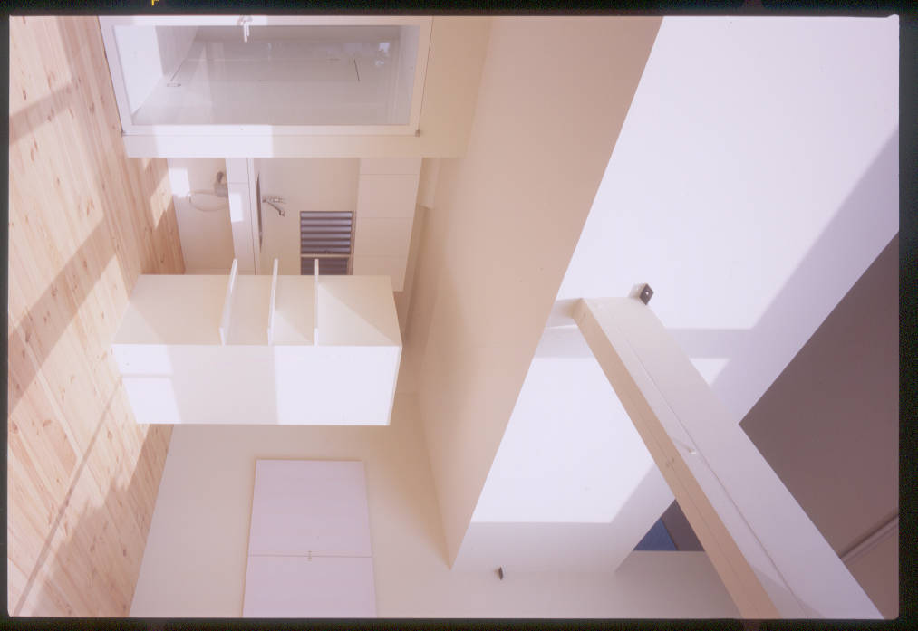 飼っているお猿くんのため、二階の部屋を減築して吹抜けを設け、明るく開放的なスペースを自由に動き回れる様にしました。