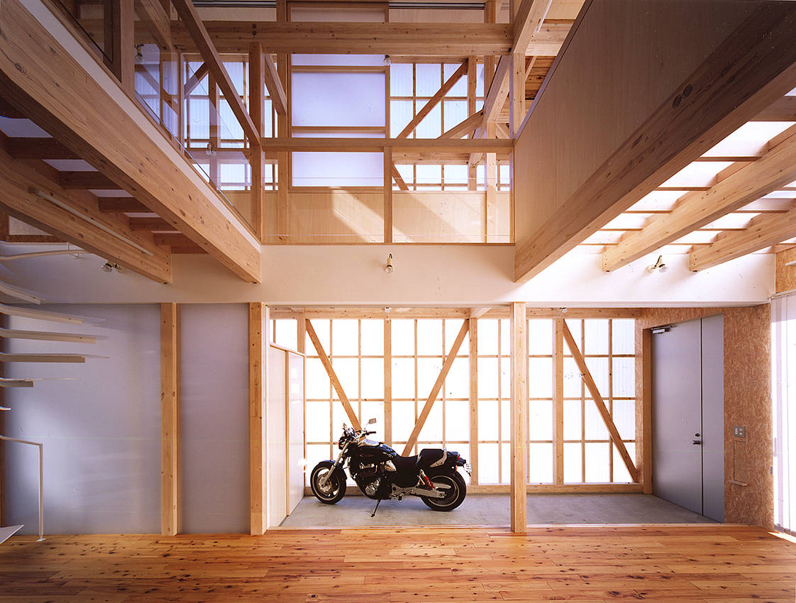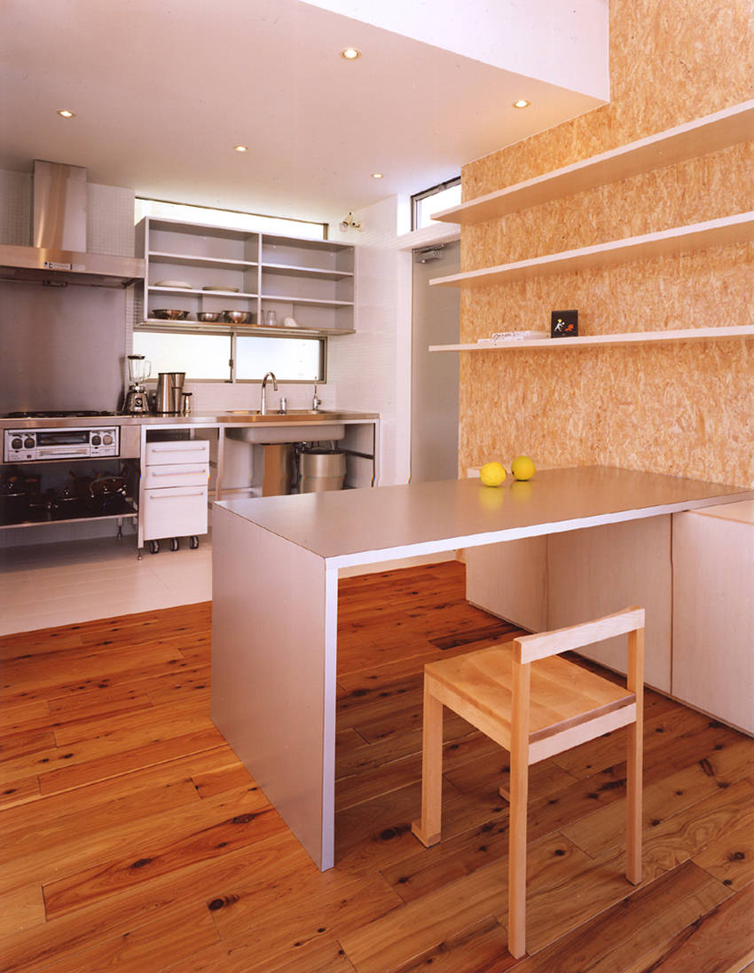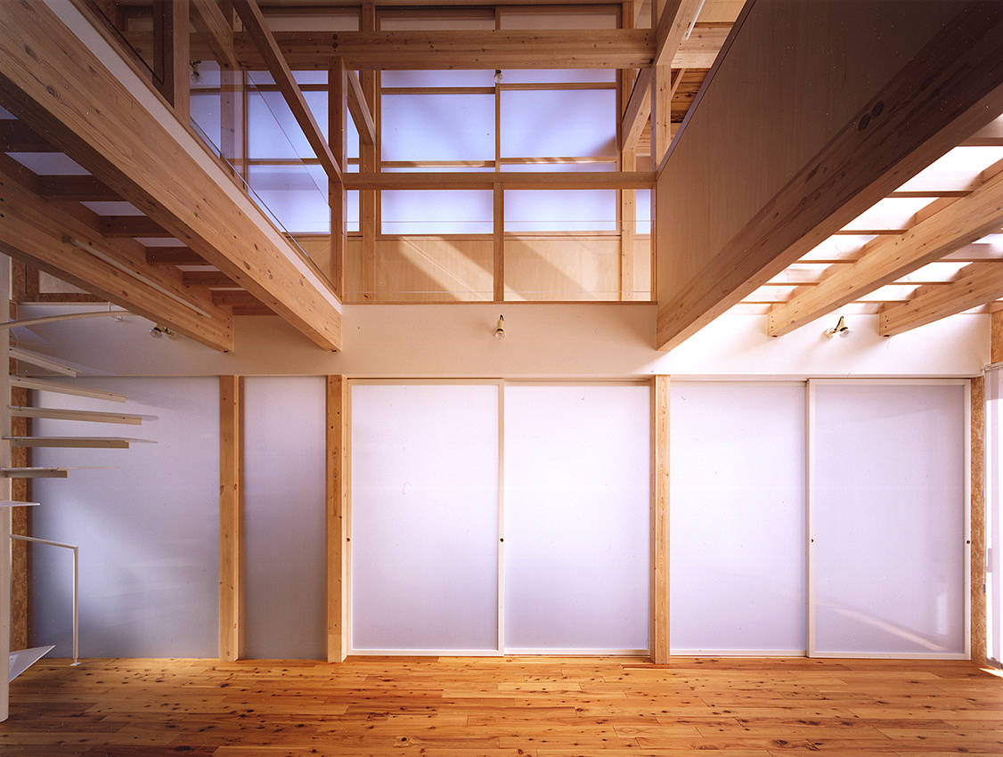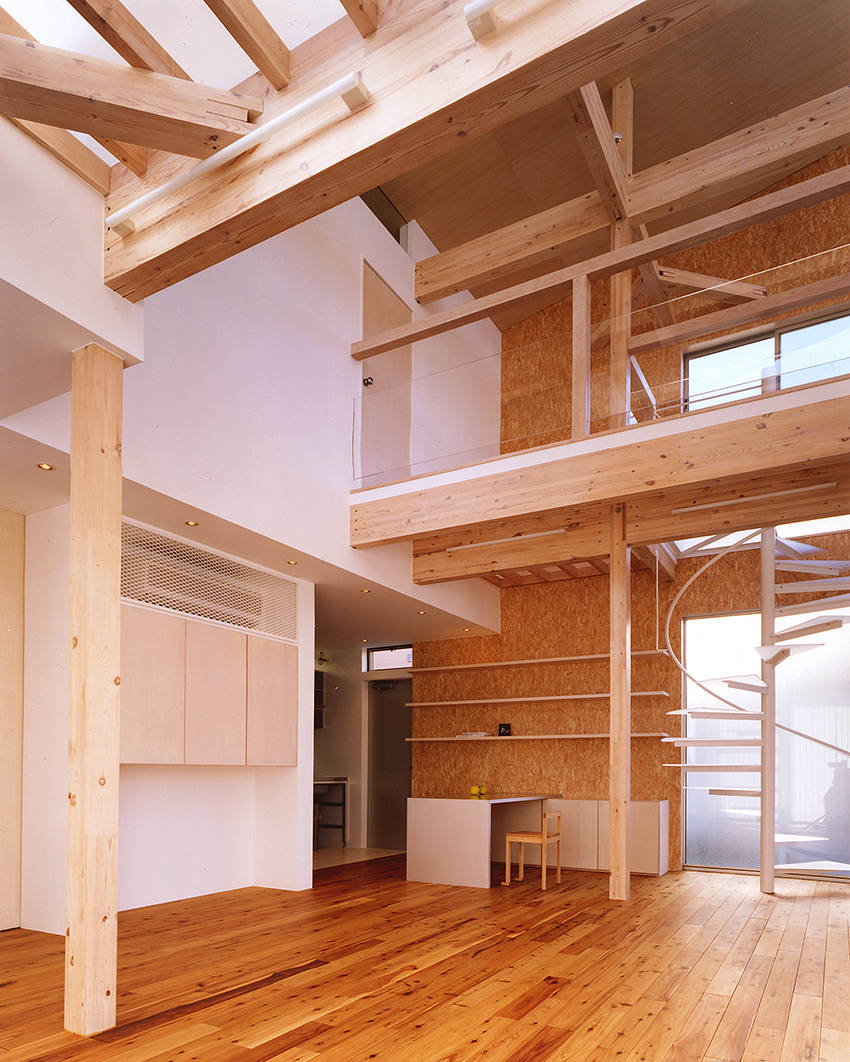 休日は釣りやスキーのアウトドアライフを楽しむ30代前半の夫婦とまもなく小学生となる長男の3人家族。地方都市の新興住宅における65坪の敷地に施主のライフスライルに答えたシンプルでナチュラルな住まいの提案。