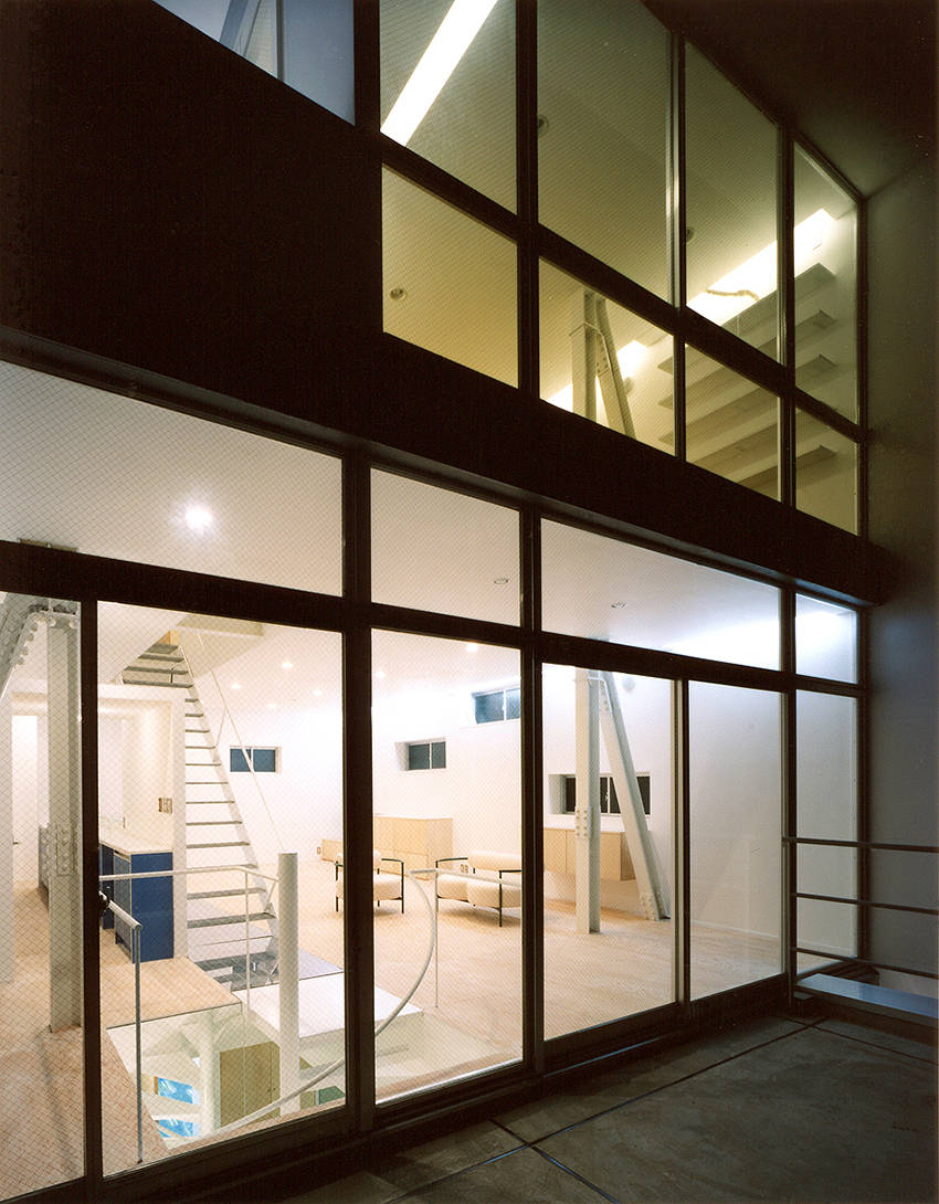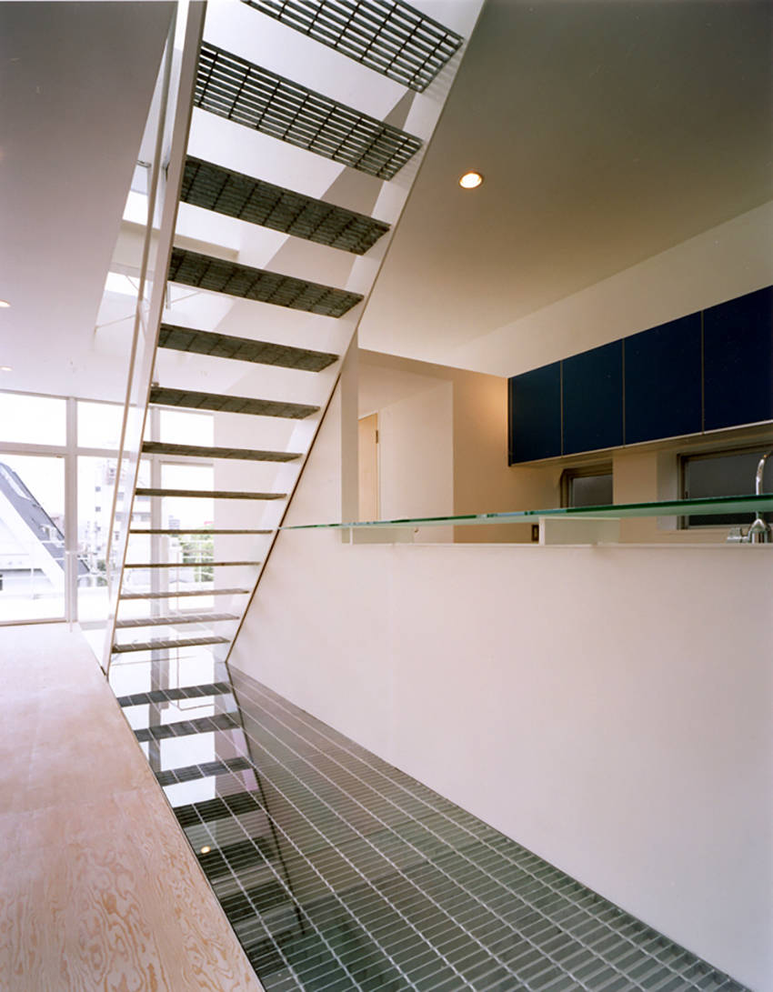 本建物はJR高円寺駅と西武新宿線野方駅の中間、環状7 号線に7 階建てのビルを介して立地する。敷地の東側がこのビルで、南面は6 階建てのマンション、西側は4 階建てのアパートであり、北面する幅員4 mの接道が唯一のボイドである。このように都心部ではありがちな採光をはじめとする住まいに求められる快適性からはほど遠い立地であった。