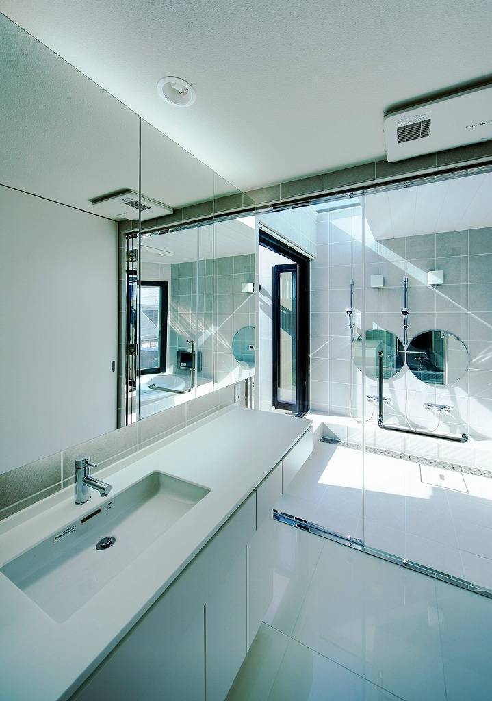 鳥の飛来、季節ごとに室内に入る太陽の光の角度、あるいは水盤に反射した光が室内の天井に映りこむ位置が変わり、違った顔を見せる空間となることでしょう。さらに使いづらいという一般論は無視して3階に露天のある浴場を計画、物干し洗濯場も隣接させているので少しは家事に寄与していることかと思います。