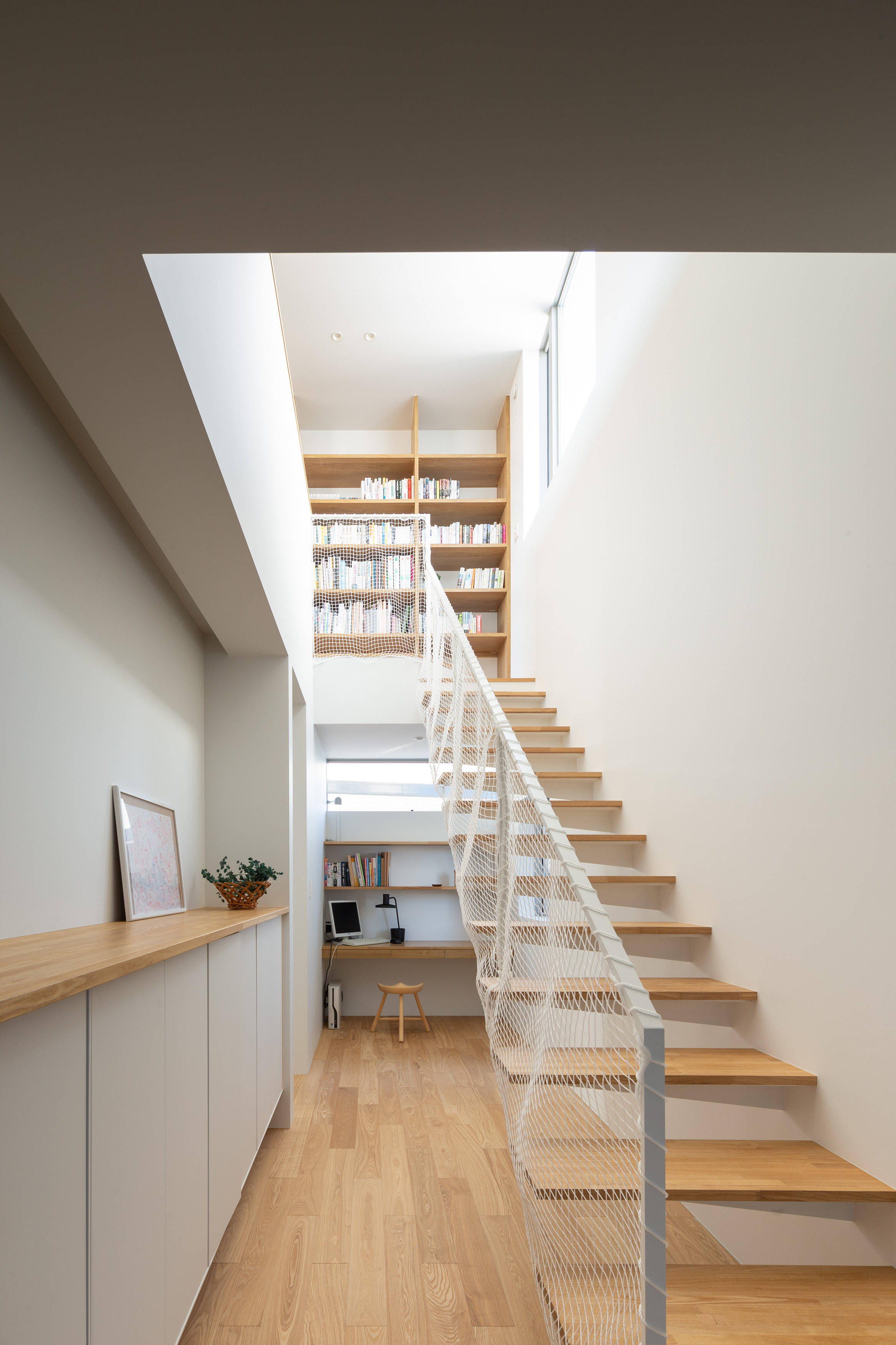 玄関に入ると明るい吹き抜けの階段スペース。導かれるように2階へ上がると、広く視界がひらけます(spread)