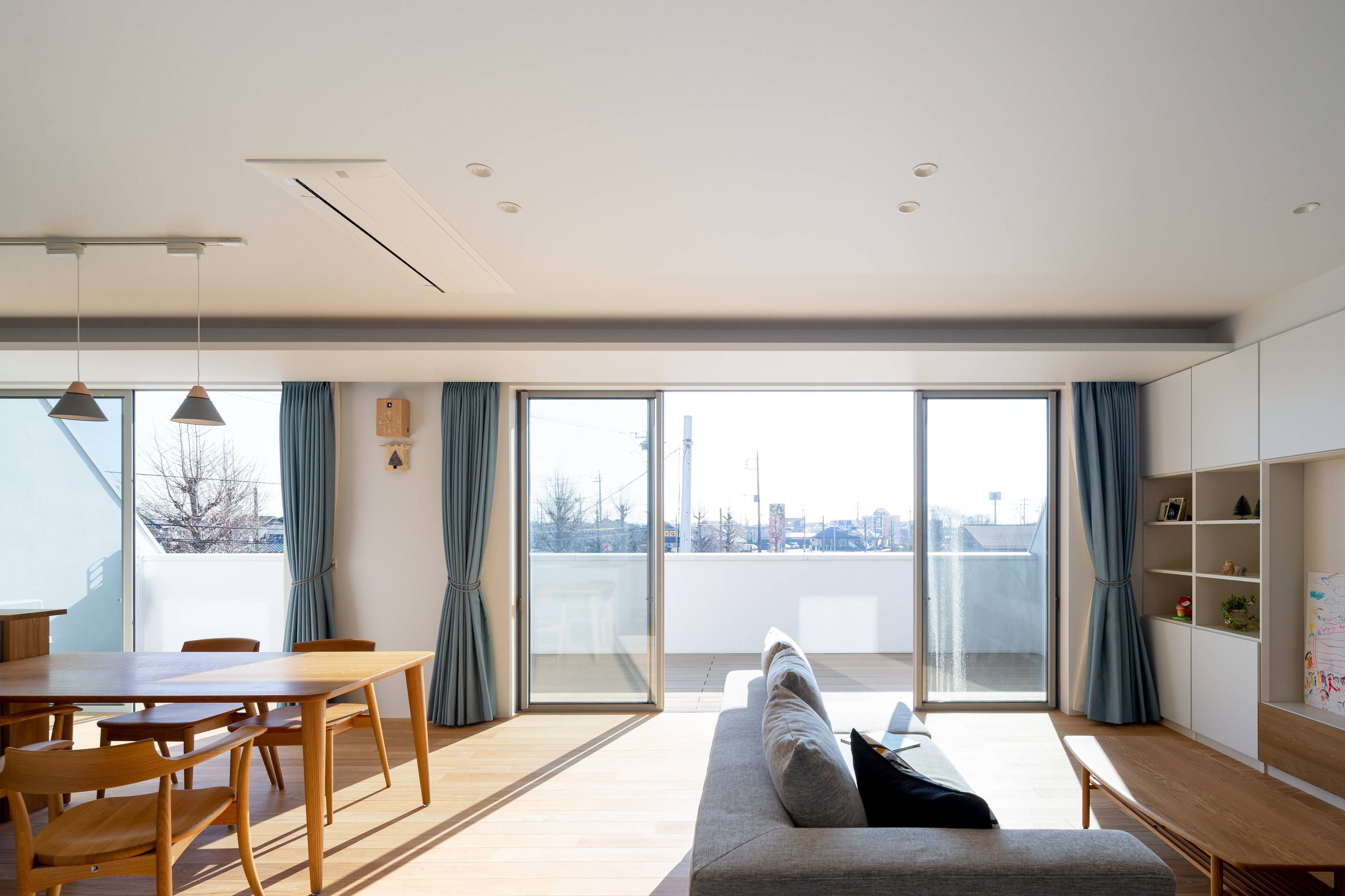 南に面した大きな開口、その先のデッキスペース、その先の空・・・。ゆったりと過ごせるLDKがそこにあります。