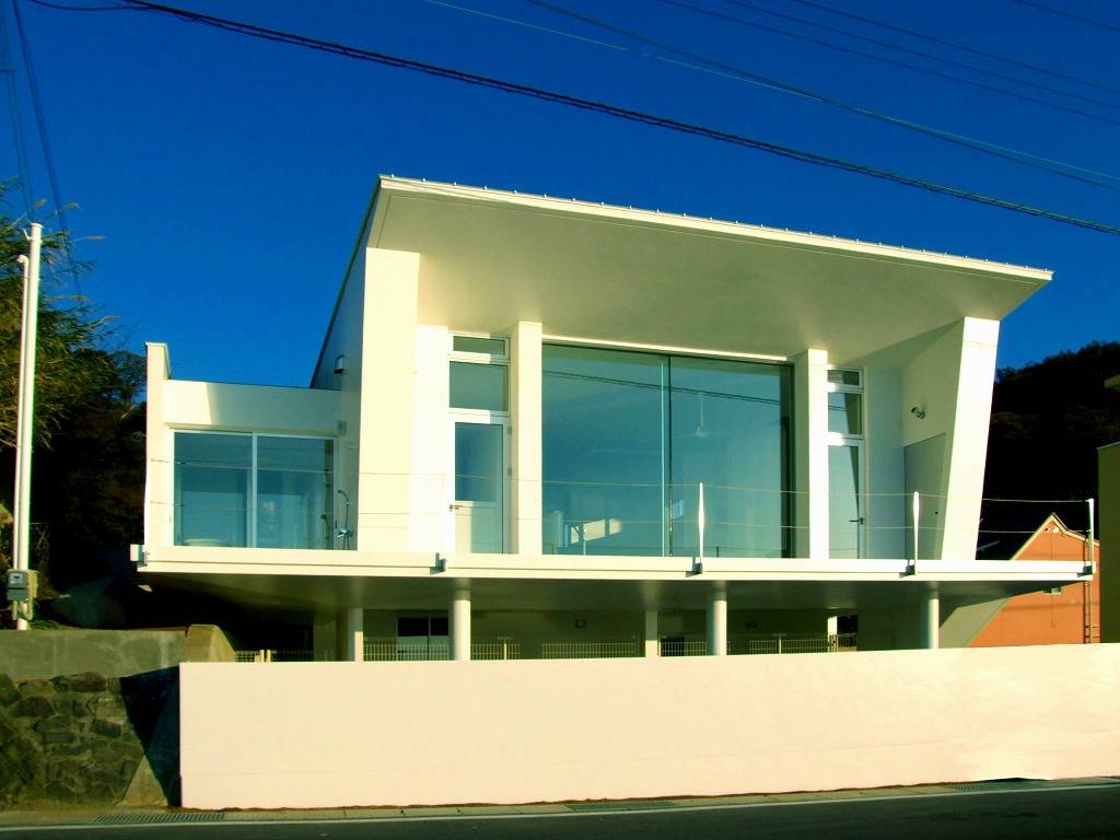 「この場所でワインを飲みながら海が見たいわ。」奥様のこの一言と、眼下に広がる海を見たときに一瞬で設計の方向が決まりました。