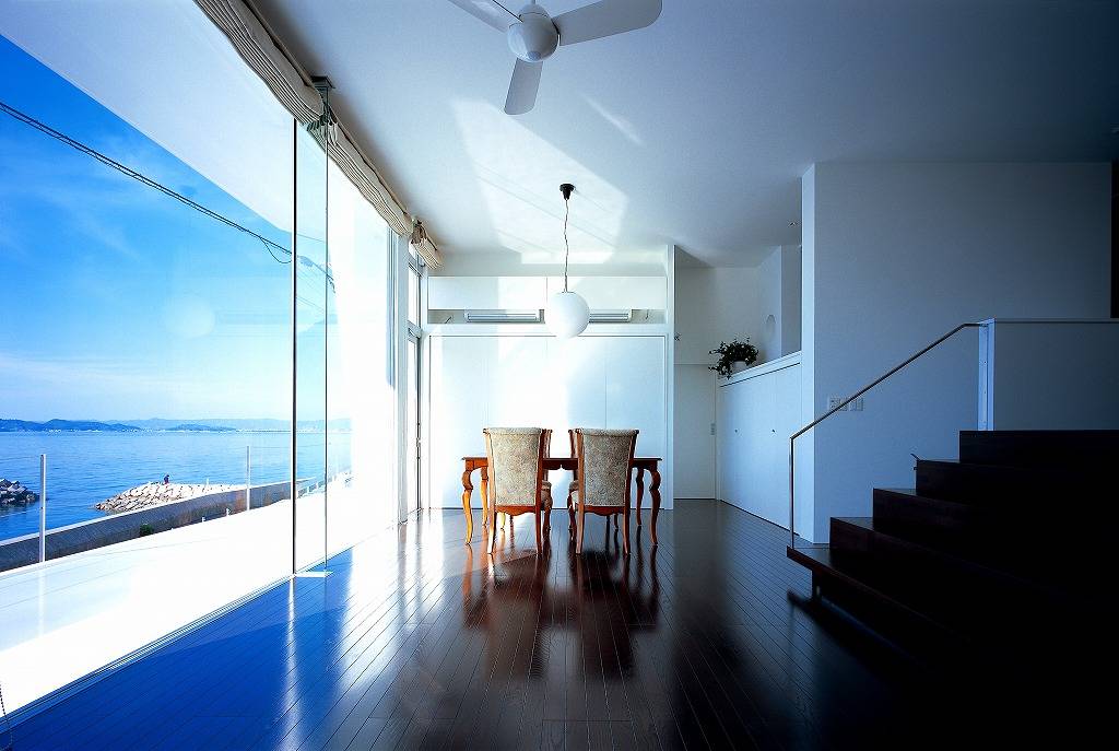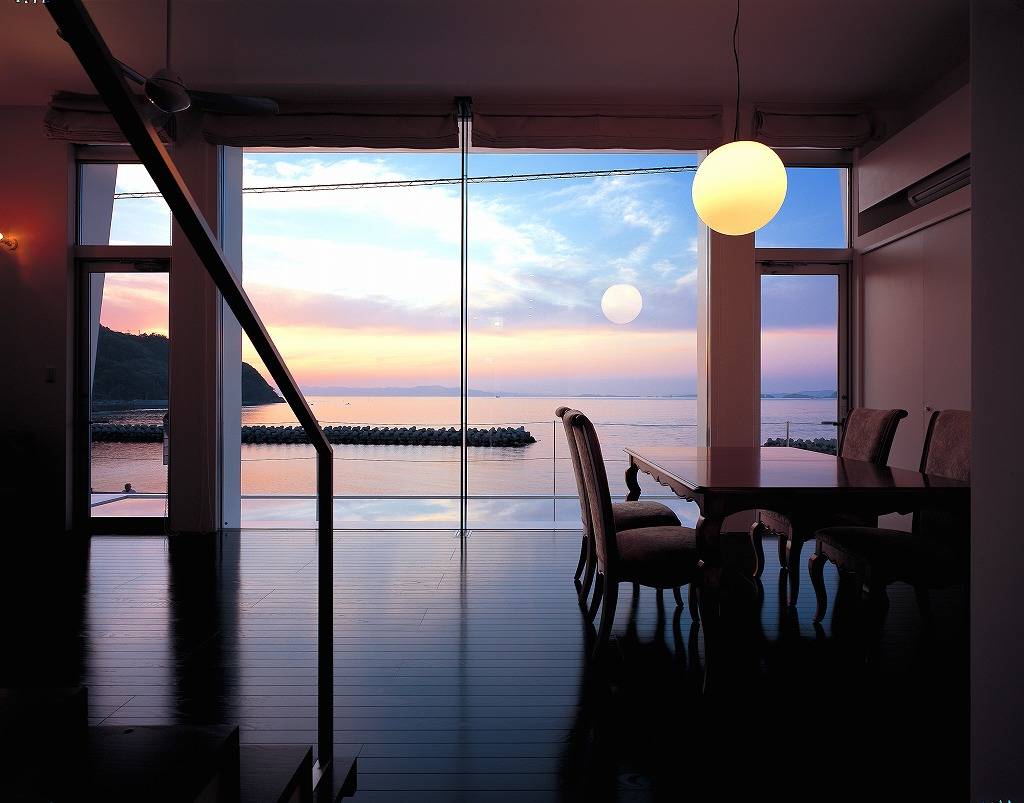 プランも何も無い白紙の状況だったのですが、映画のワンシーンのように夕日が海に沈む眺めのリビングでお二人がワインを飲んでいられる情景がすぐにうかびました。
