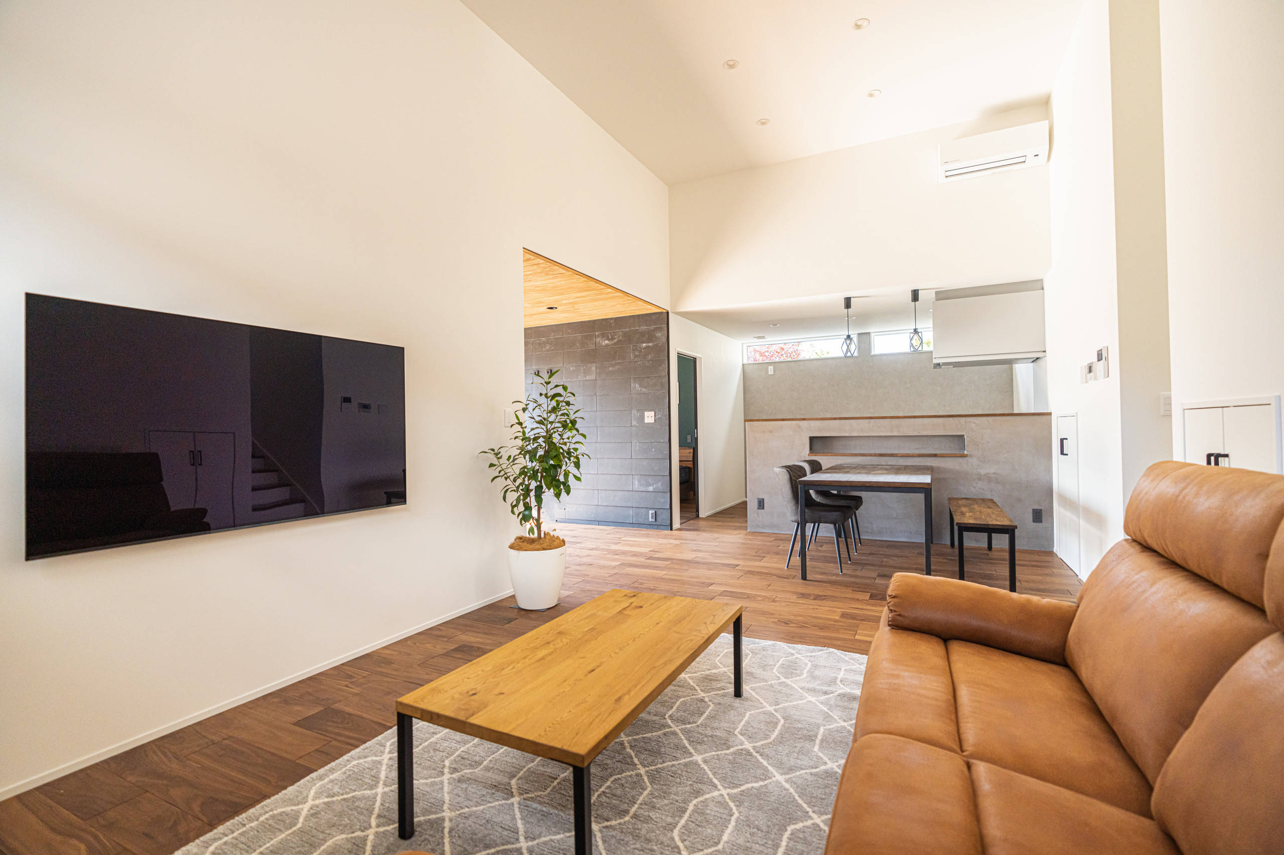 親戚友人が大人数が集まってBBQをするとの事で、大きなウッドデッキを介して屋外、屋内がシームレスに繋がる空間を目指しました。