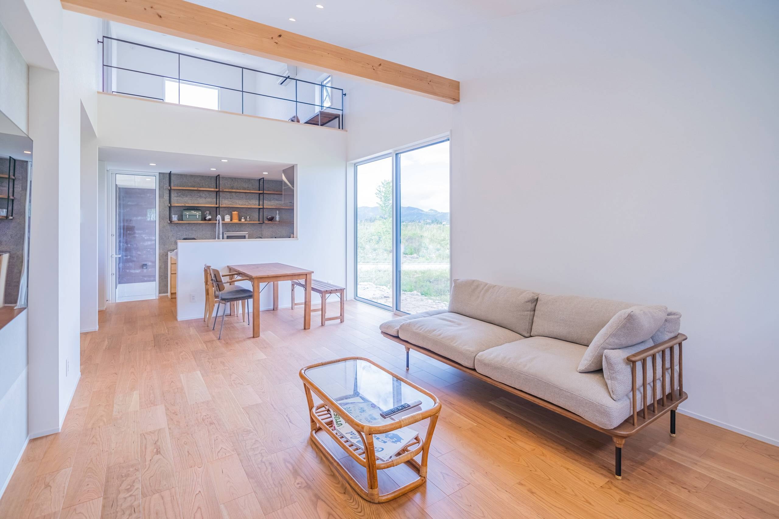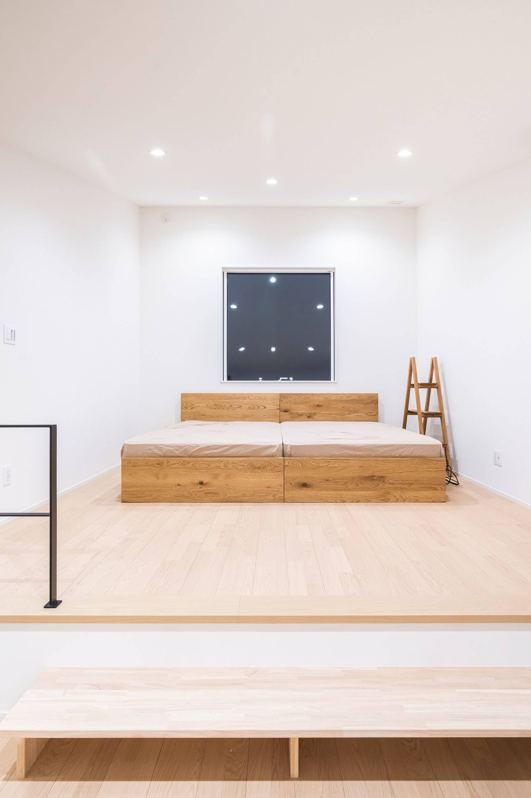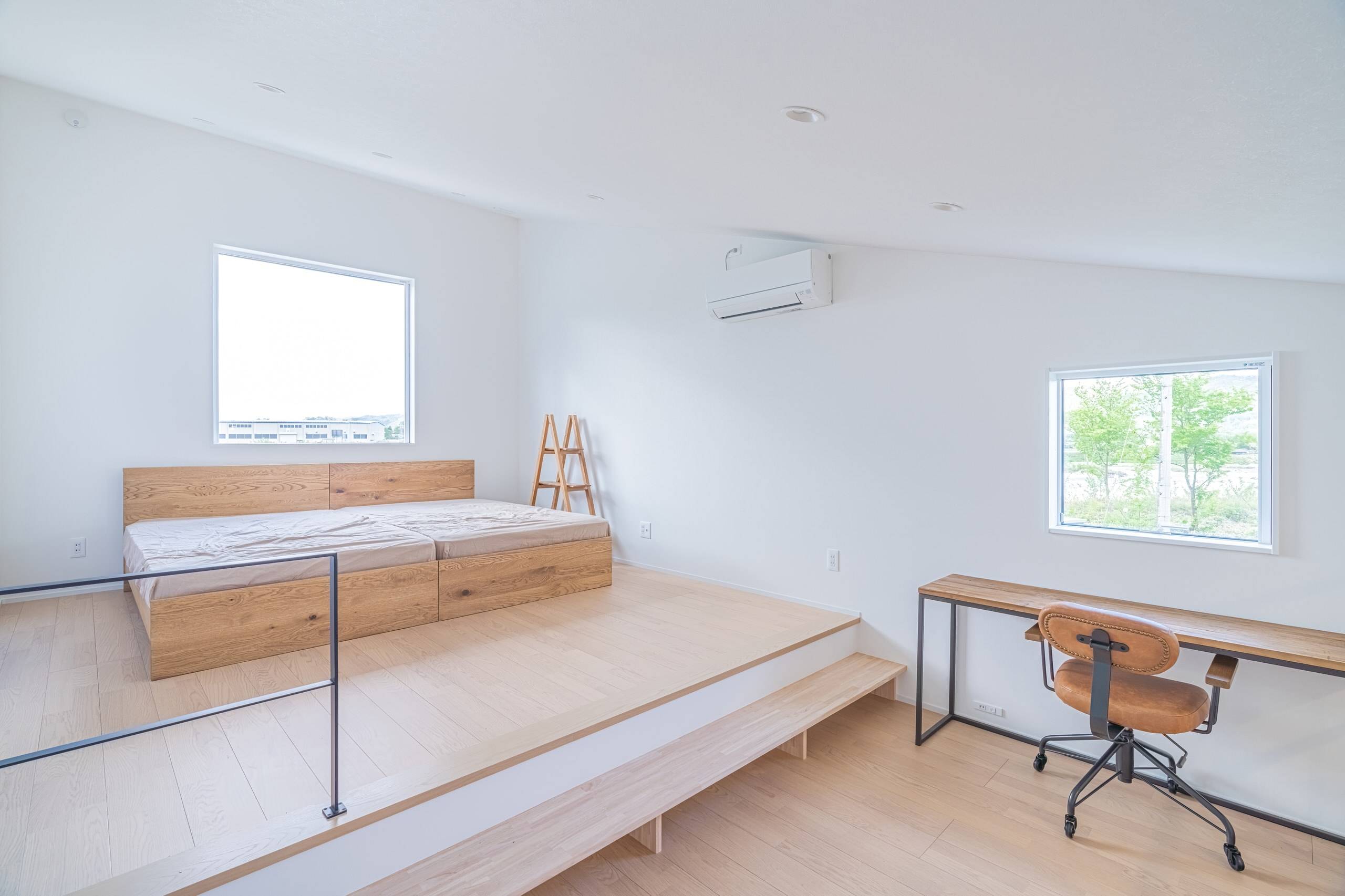 スキップフロアを干渉空間として1Fリビングと空間で繋がった寝室からは、北アルプスが毎日眺められます。