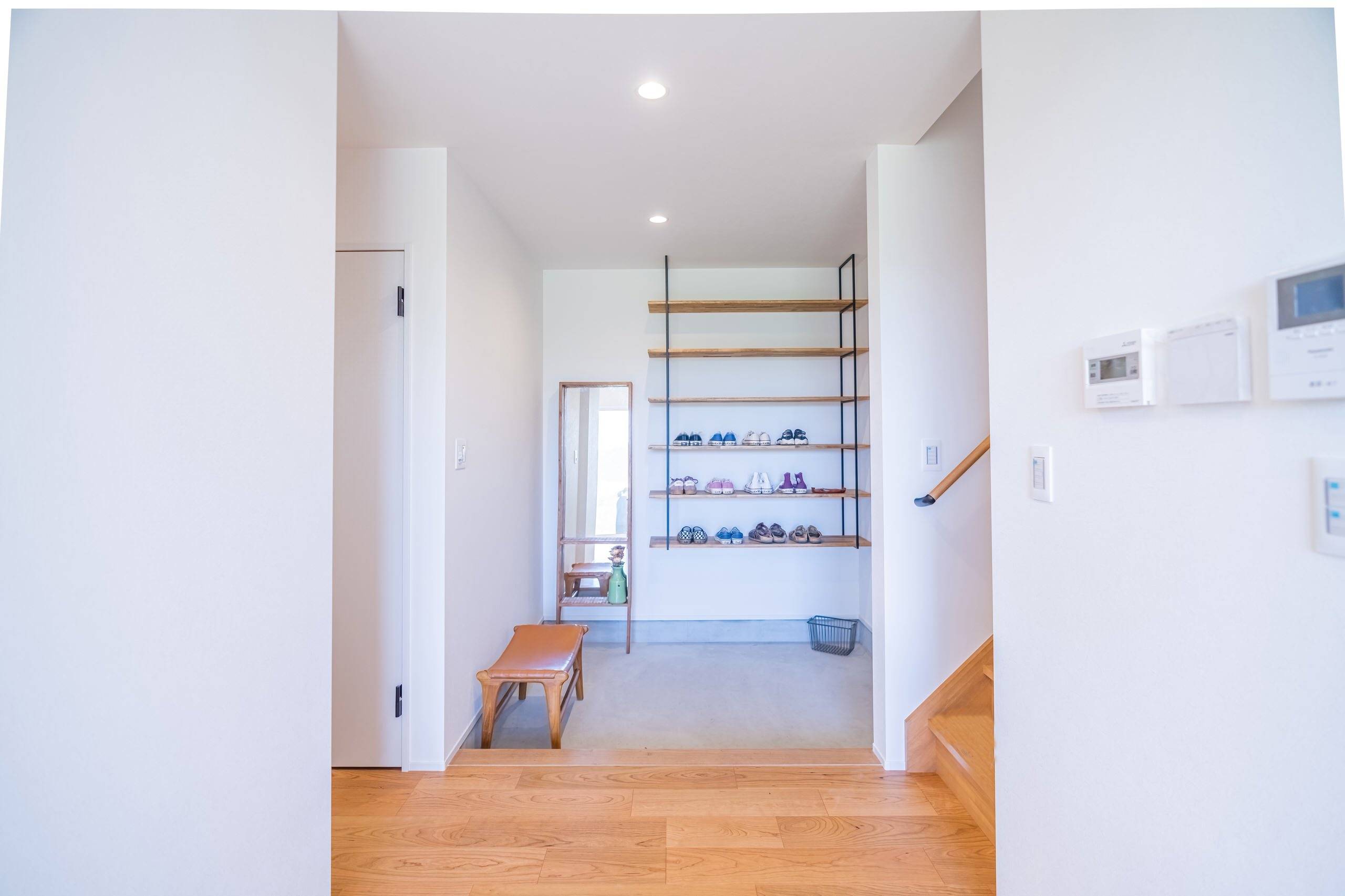古着やアンティークな小物もしっくりくるような無骨さを残しつつ全体的に白をベースにシンプルなつくりとして余白を残した家だけであえて完結させないつくりです。