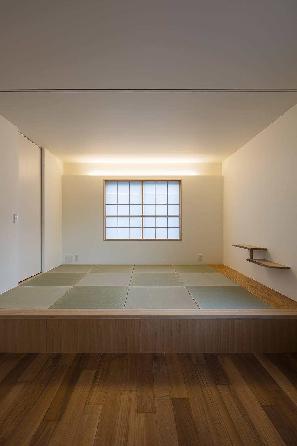 二世帯住宅で各世帯がプライバシーを尊重しつつ、落ち着いて暮らせる住まいです。 エレベータを設けて、親世帯を3階に、子世帯を1、2階に計画。1年を通して陽当たりがよく視界が開けた南角に各世帯のLDKを配置しました。 各世帯がほどよい距離感を保って快適に暮らせて、近隣との交流も図れるようにそれぞれに役割をもたせた外部スペースを組み込んだ住まいです。