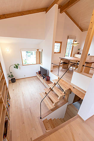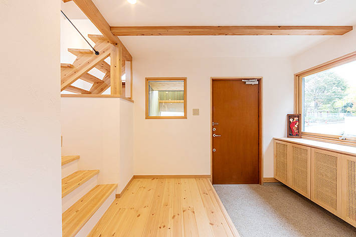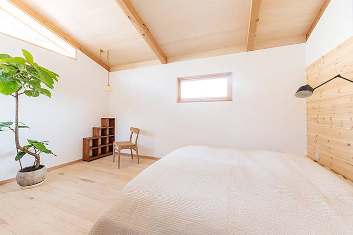 主寝室。隣家と視線が合わないように、窓の位置と高さを決めた。