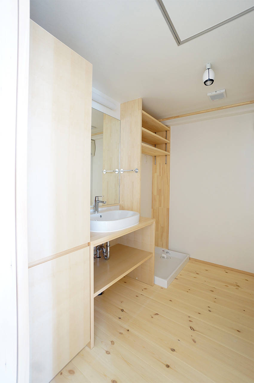 洗面洗濯室。隣室のクロゼットのスペースを取り込んで少し広げた。