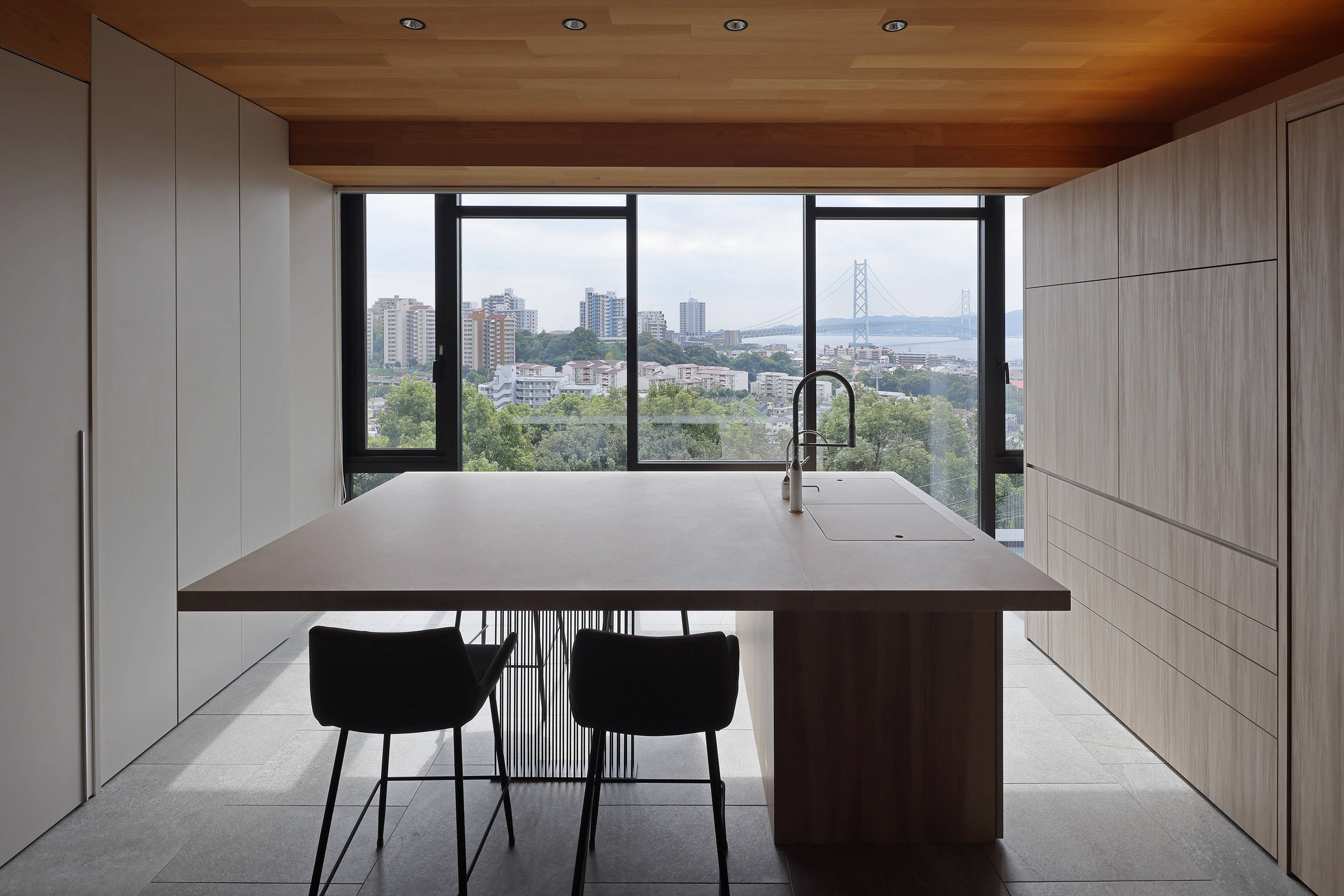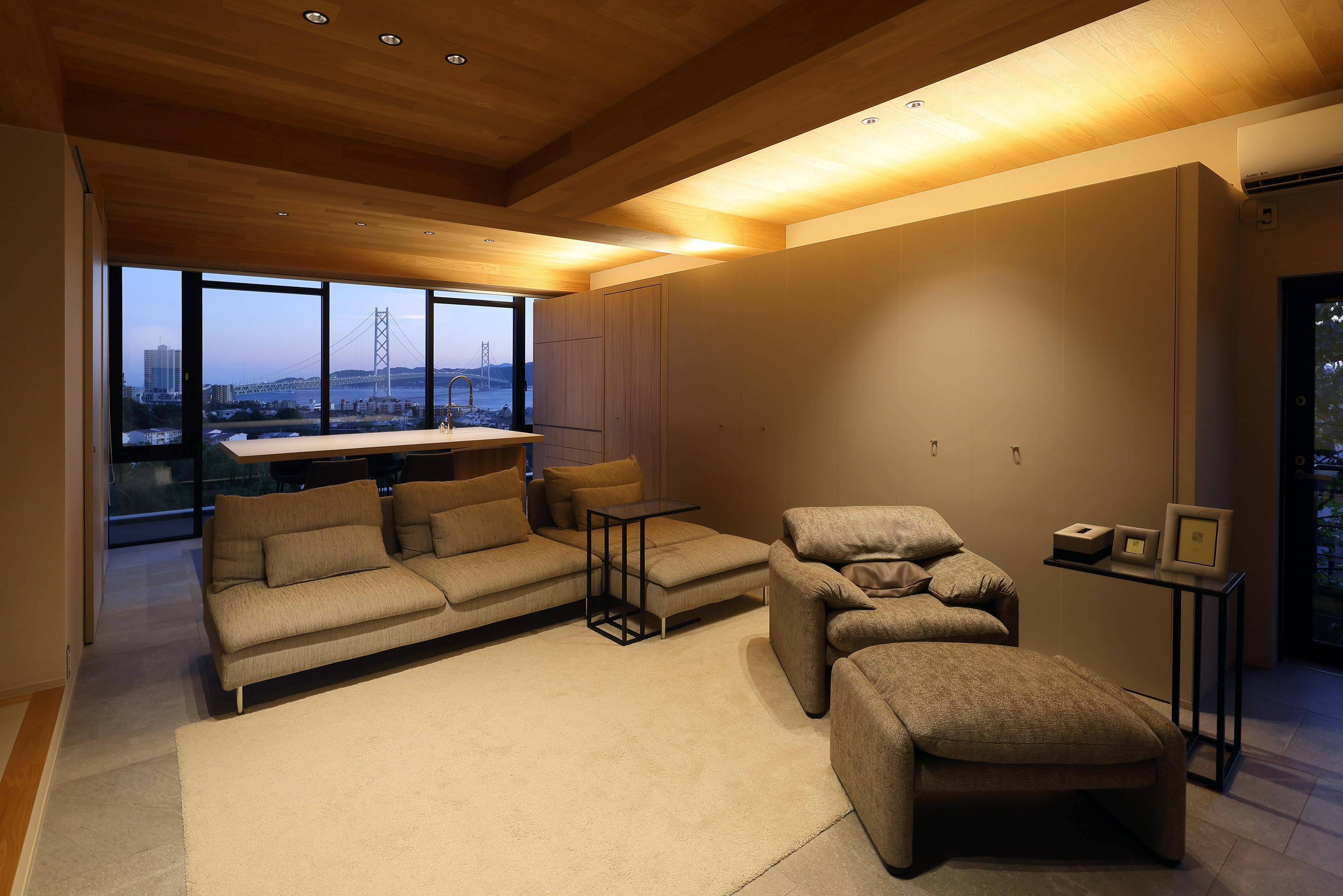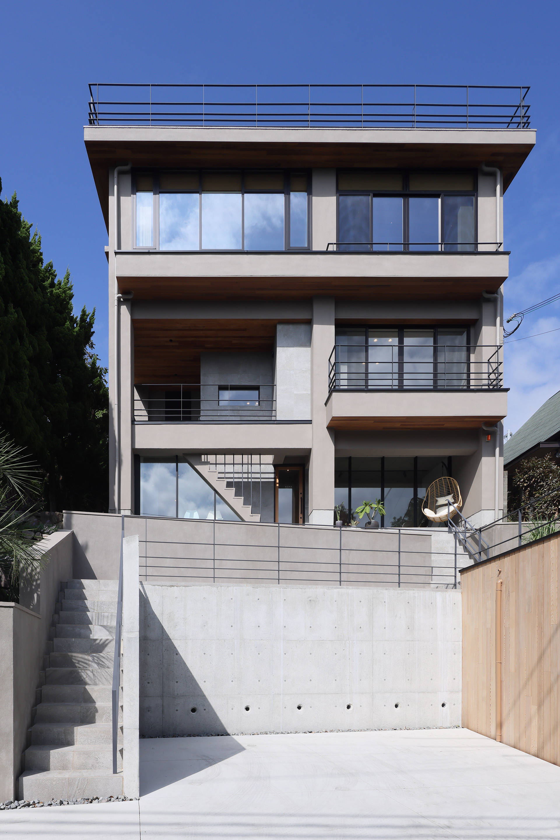 住宅街に建つ二世帯住宅。1階は親世帯、2階は子世帯として計...