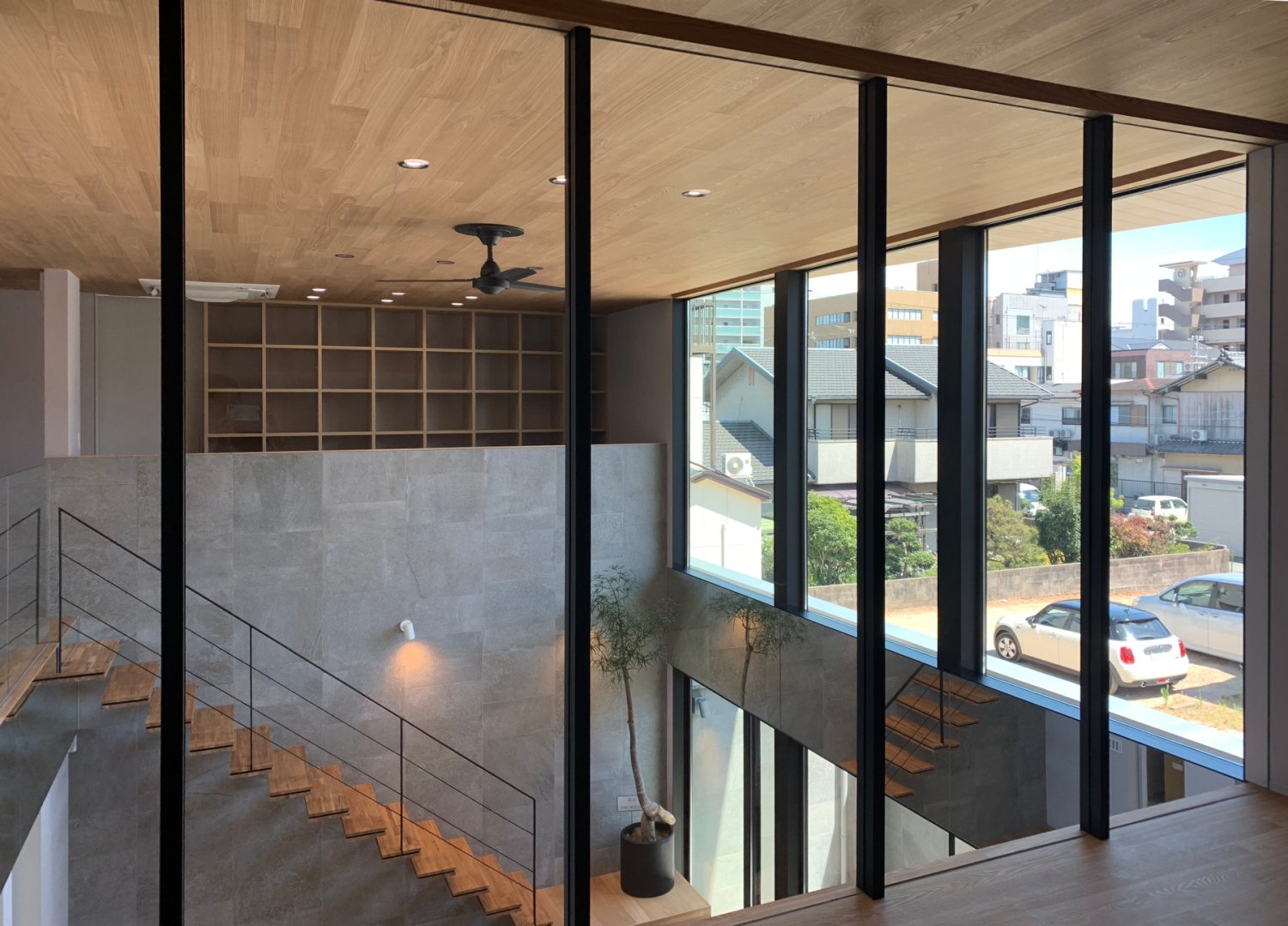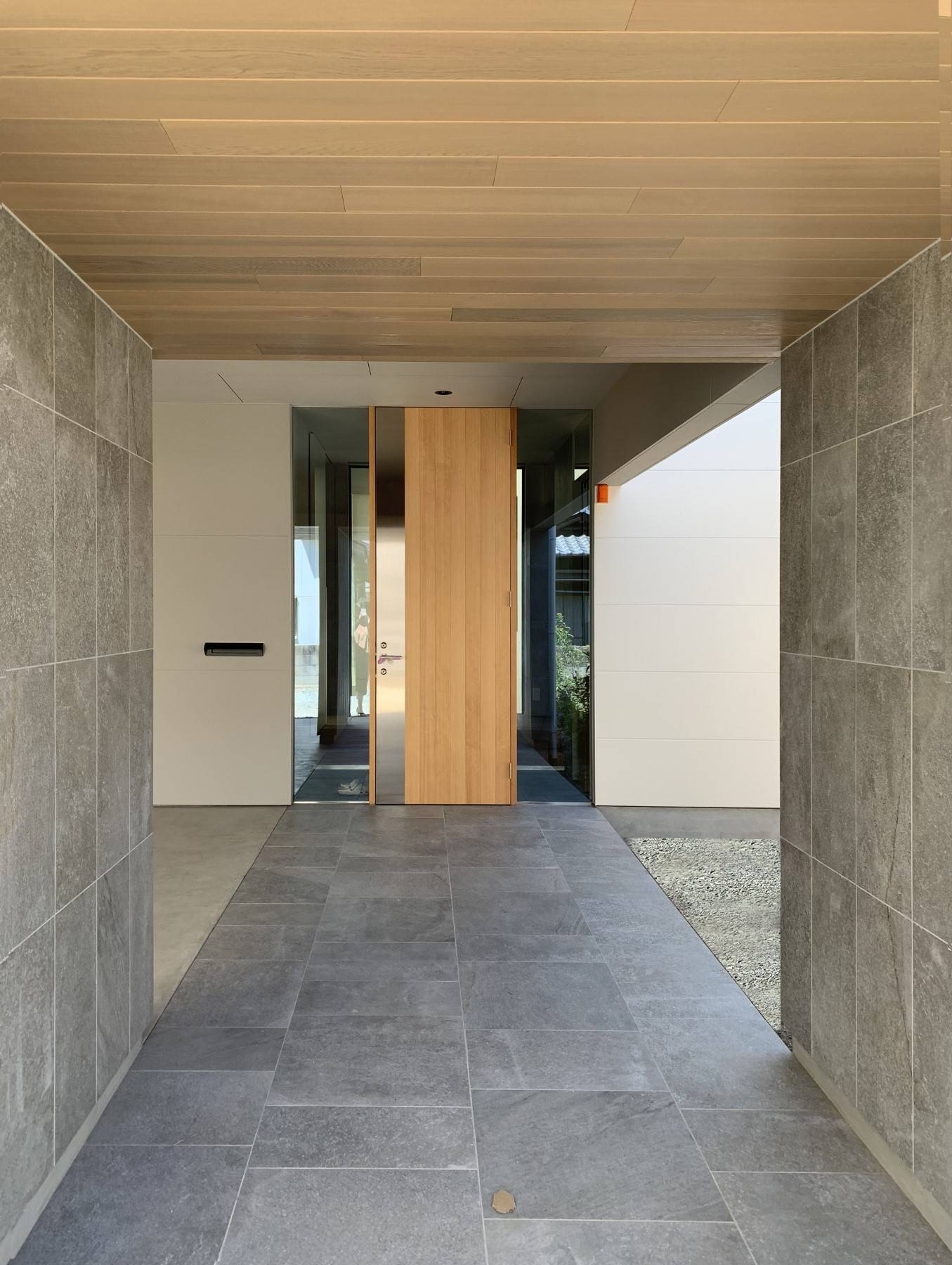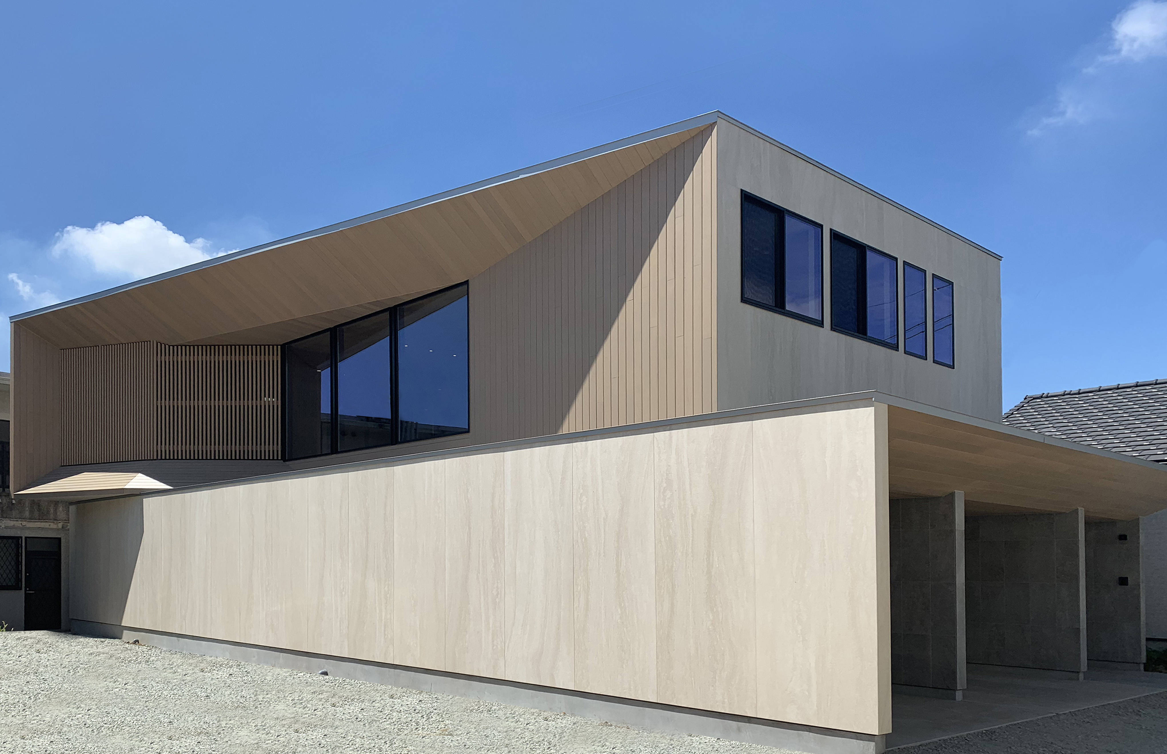 住宅街に建つ二世帯住宅。1階は親世帯、2階は子世帯として計...