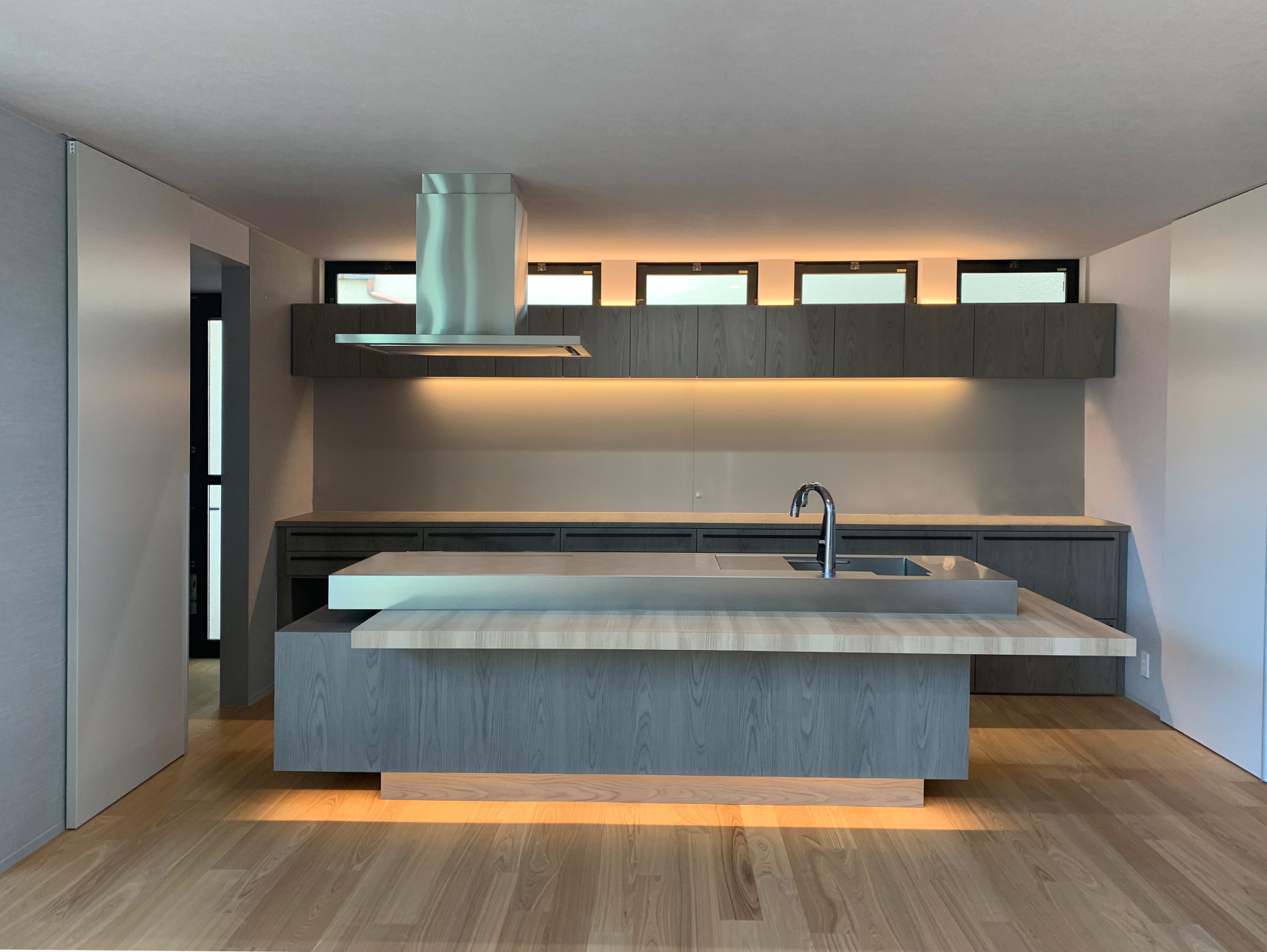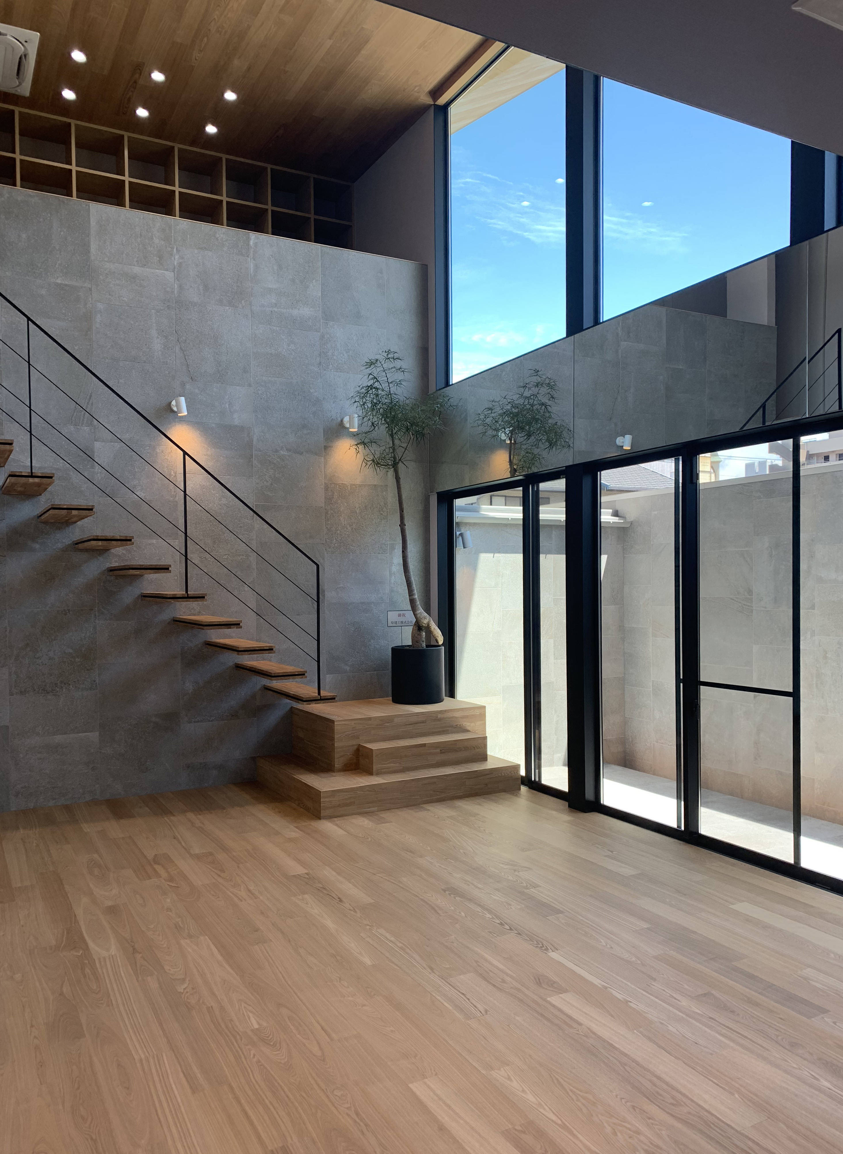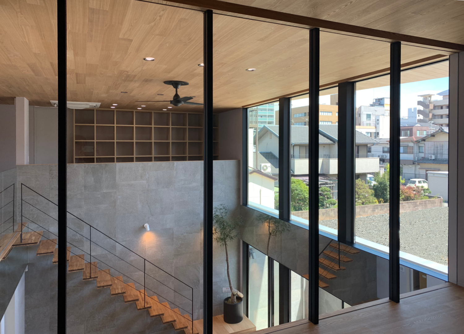 住宅街に建つ二世帯住宅。1階は親世帯、2階は子世帯として計...