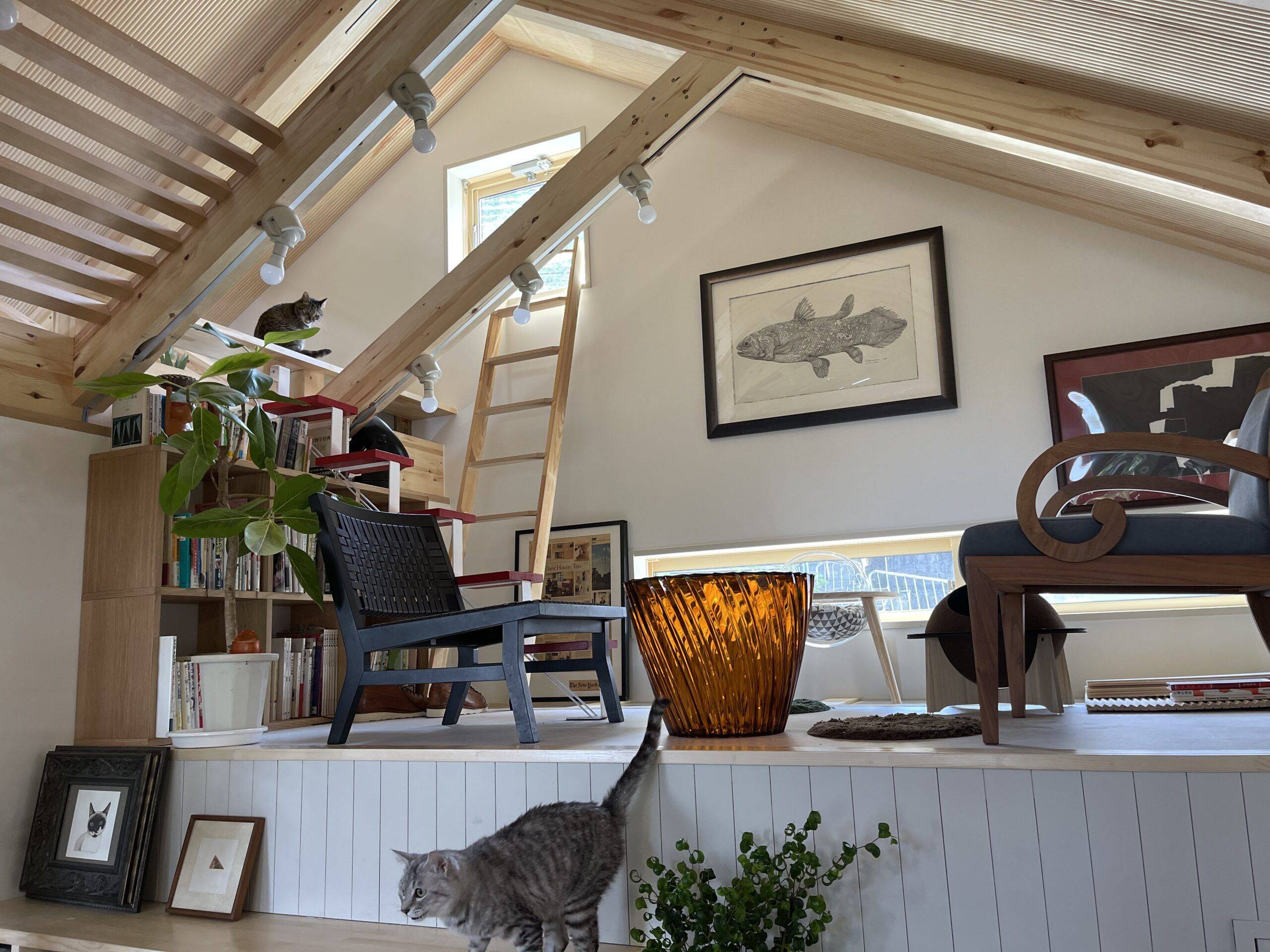 Fauna+DeSIGN代表の廣瀬慶二の自邸兼アトリエ。猫と暮らす家・犬と暮らす家の模範例として建設。