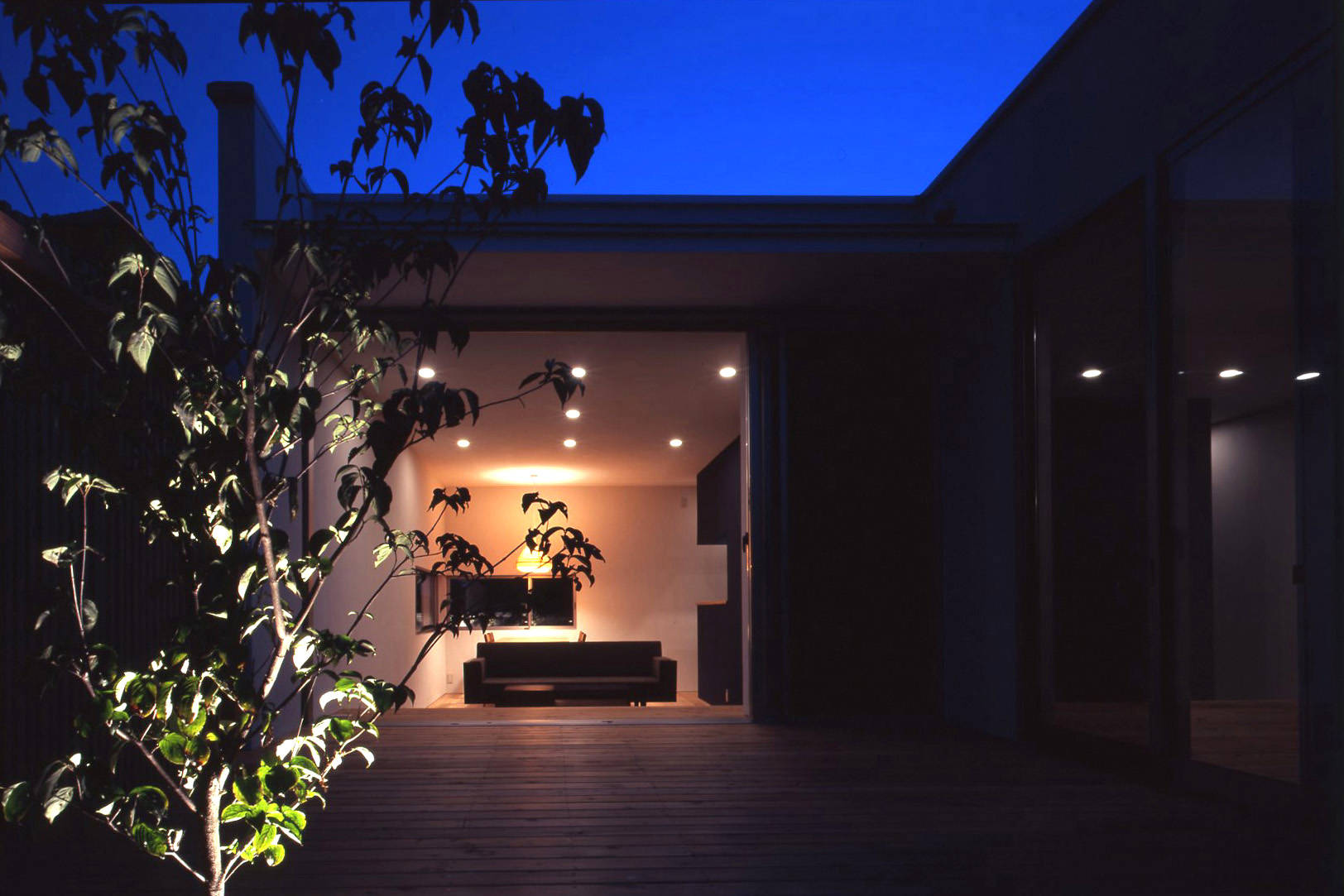 ・ 奥へ辿り着くとテラスを取り込んだリビングダイニング