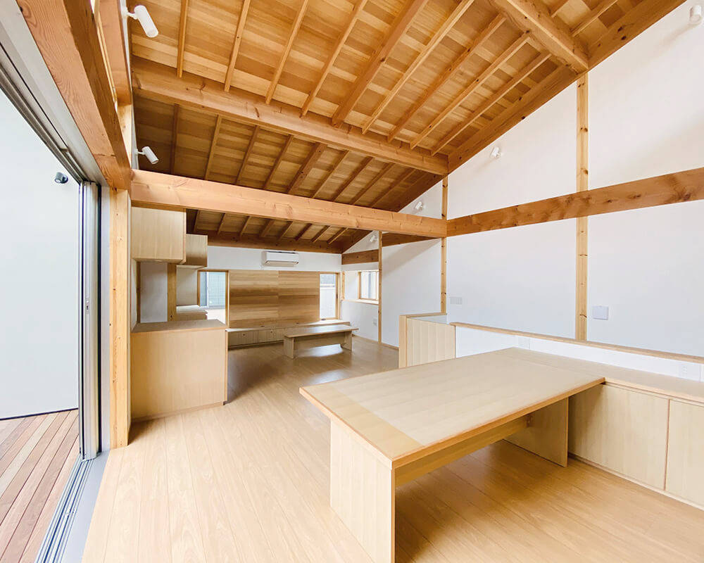職住兼用住宅として使用できて将来の変化にも対応し、愛犬たちも暮らしやすい三寸勾配屋根の家にしたいということが大きなテーマでした。
