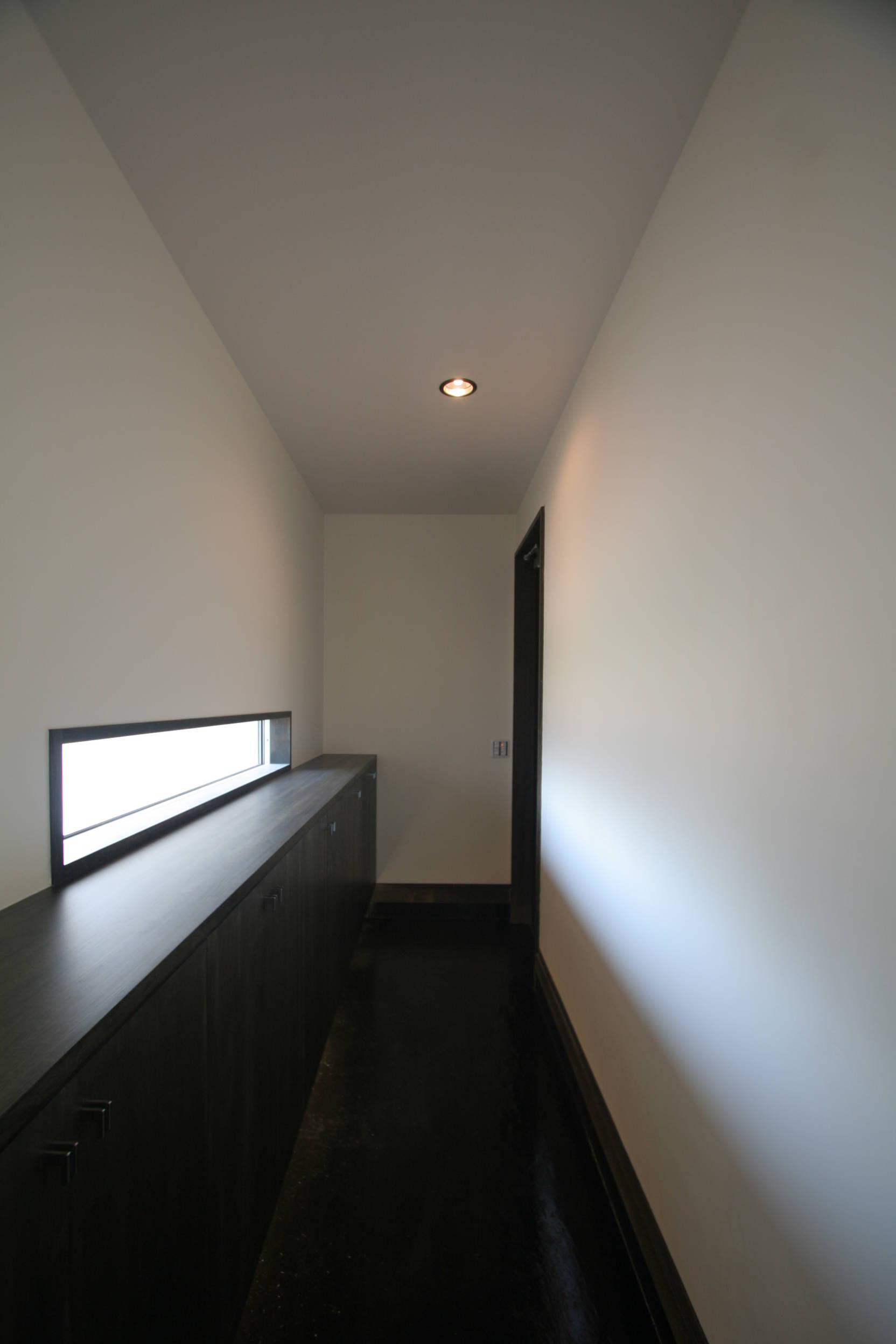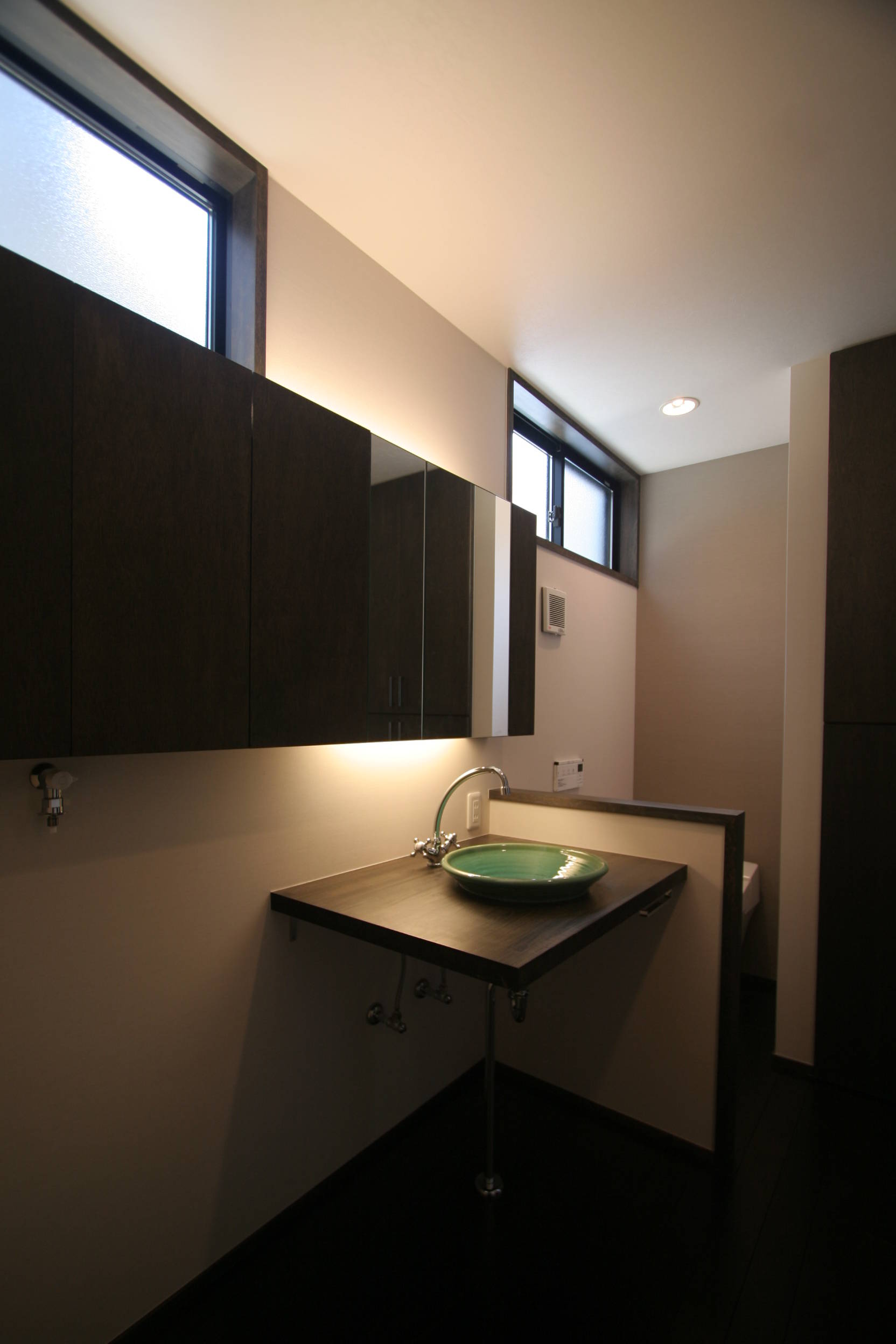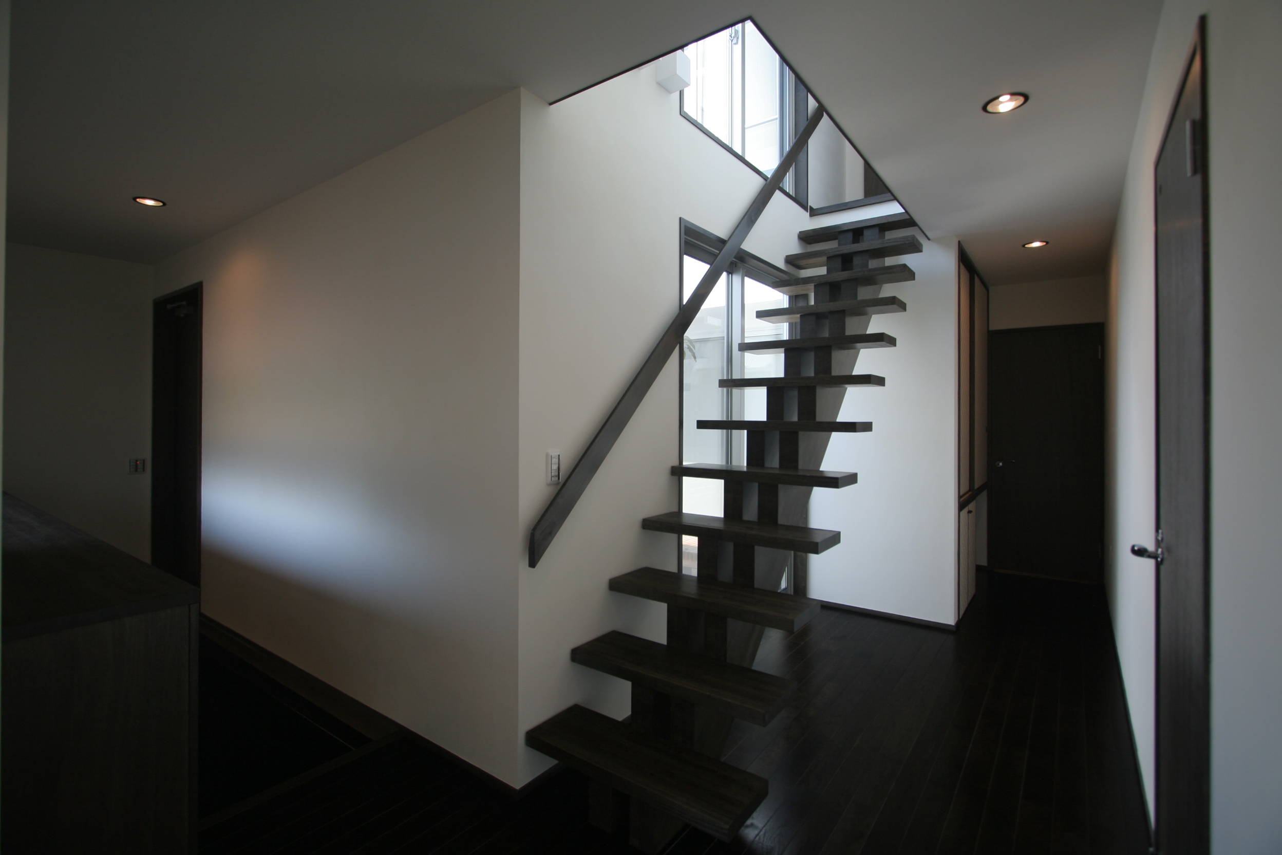 街に閉じ、内に開いた家を目指しました。2階にルーフ・デッキを設け、隣家からの視線の干渉を避けつつ、開放性を確保しています。コの字型の平面に中庭を設け、植えたのは「かくれみの」の樹。 室内は和モダン・テイスト。求めたのは<古さ>ではなく、<落ち着き>。大人の家としての凛とした佇まいと、品の良さ。年月を経ても朽ちていくのではなく、味わい深くなっていく家でありたいと願った家。