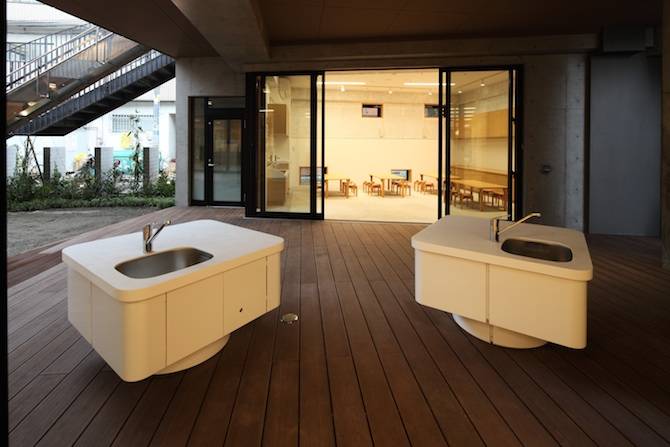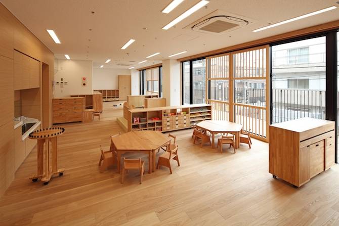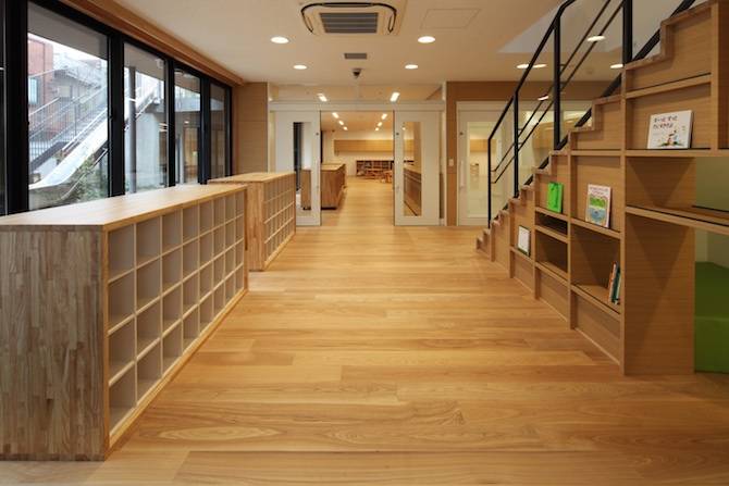 新宿歌舞伎町近くの大久保という地域柄、多国籍の子どもを対象とした子ども園の運営と施設のプロポーザルが実施され、異年齢保育の実践と毎日の遊びを自ら選択しながら学び成長する仕掛けとして、家具・建築・緑で環境をつくり、地域に開いた施設を提案した我々の計画が採用された。