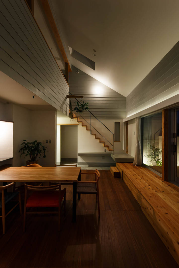 物理的には外と近いけど感覚的には離れている、明るい場所と暗い場所、天井が高い所と低い所、硬い素材の場所と柔らかい素材の場所。そんな相反した場所が空間の中に混在した時、そこに心地よさが生まれると思います。