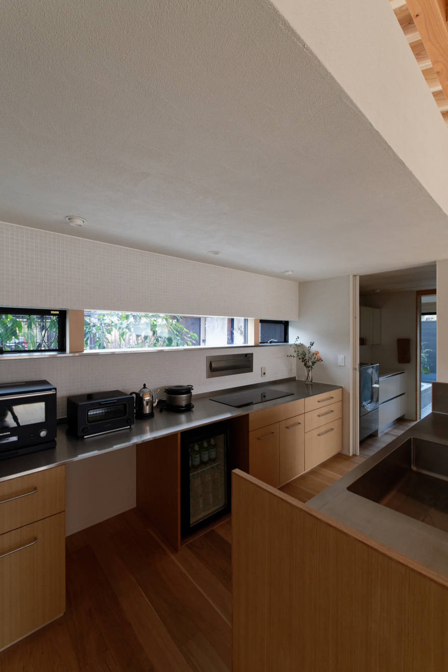 地域が持つ路地の奥行きとその風景、素材から感じられる歴史の積み重なりや、人々が歩く目線における街のスケール感。 それらを拾い集め再解釈し、この住宅にその要素を落とし込こんでいます。