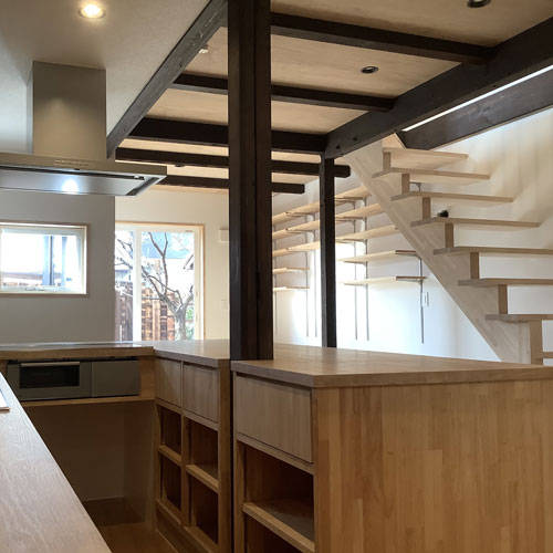 計画当初からイメージしていたカウンターキッチンを中心にリビングダイニングを配置した、明るく居心地のいい住まいです。