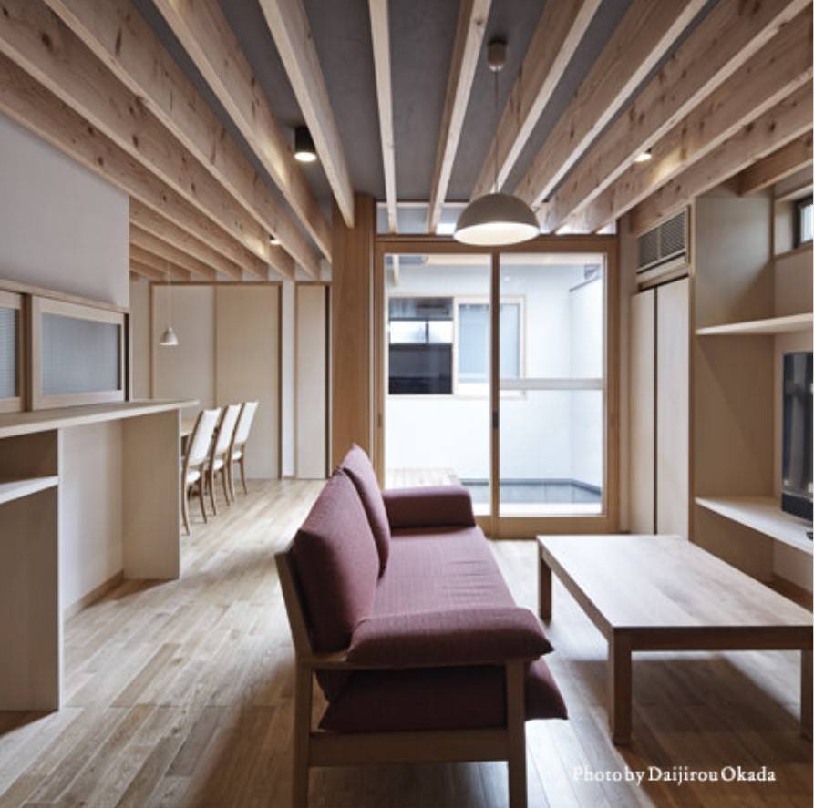街中の住宅で有る為、中庭を配することで外に閉じ、内にひらく空間構成をとりました。