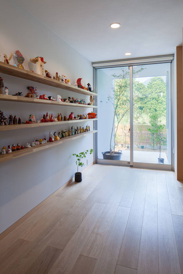 隠すための収納と、趣味のものを飾るための棚の量・場所なども設計段階から熟考し、物を飾りながらもスッキリと暮らせるようにしました。