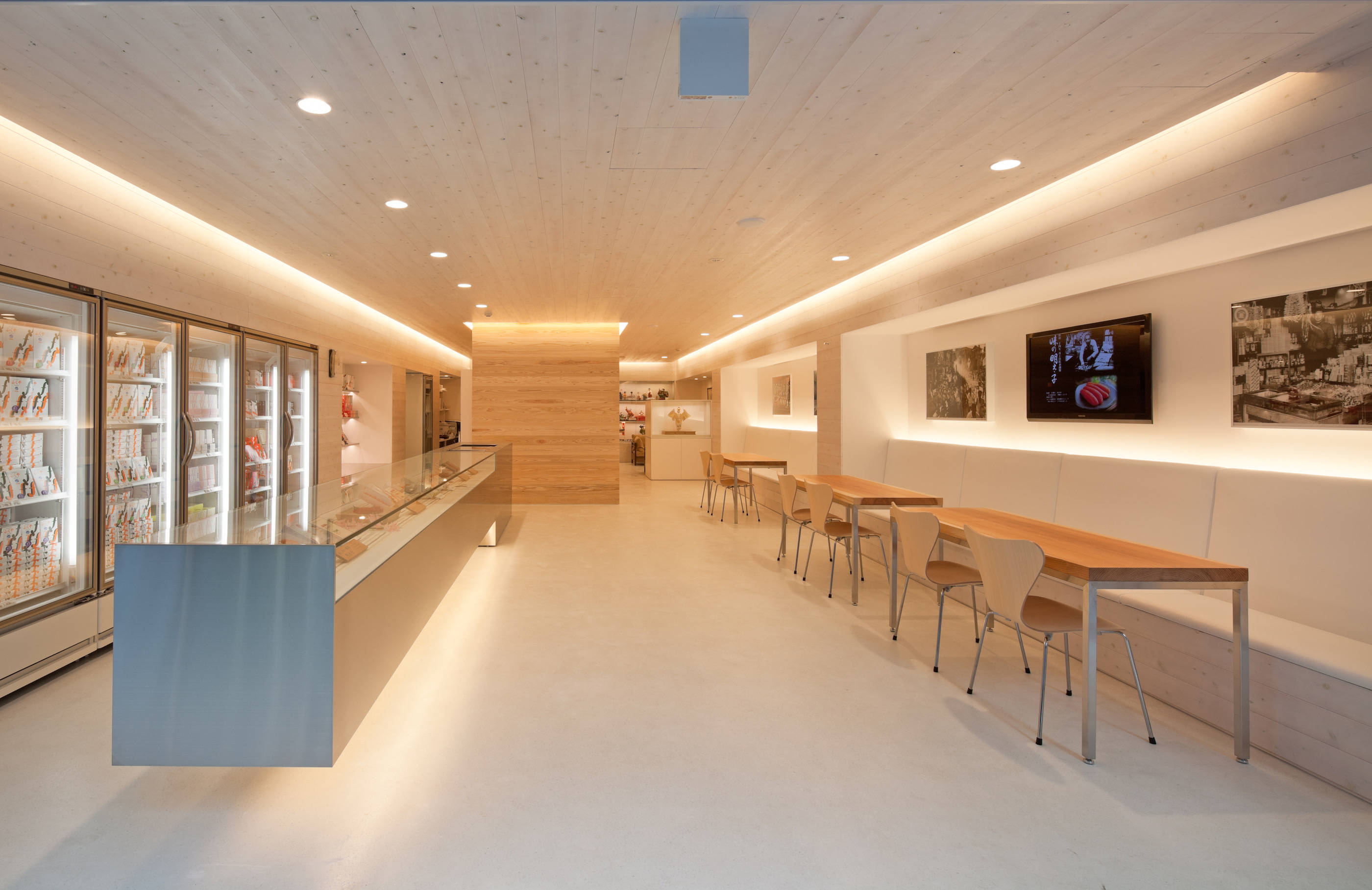 中洲本通りに開き、通りから店の奥まで見えるようにして、訪れるお客さんに清潔感と安心感も持ってもらえるように計画しました。