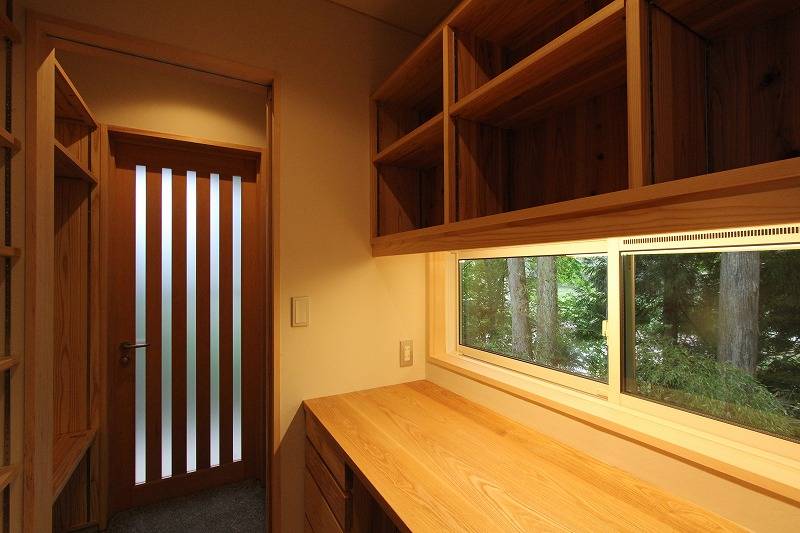 敷地は小高い尾根に上にあり、周囲の田圃を見下ろす長閑な環境であるが、北陸の厳しい冬の季節風を避けるために北西側を閉じ、南東側に大きく建物を開放している。