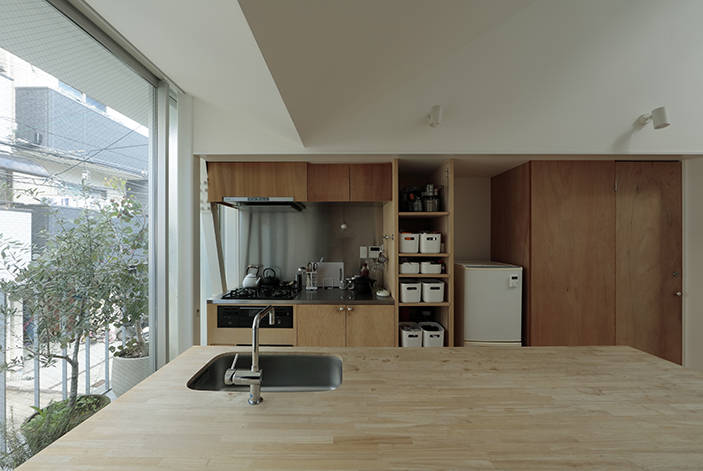 神戸市長田区、多くの建物が1995年以後の短期間に作られた街に建つ夫婦2人のための住宅です。