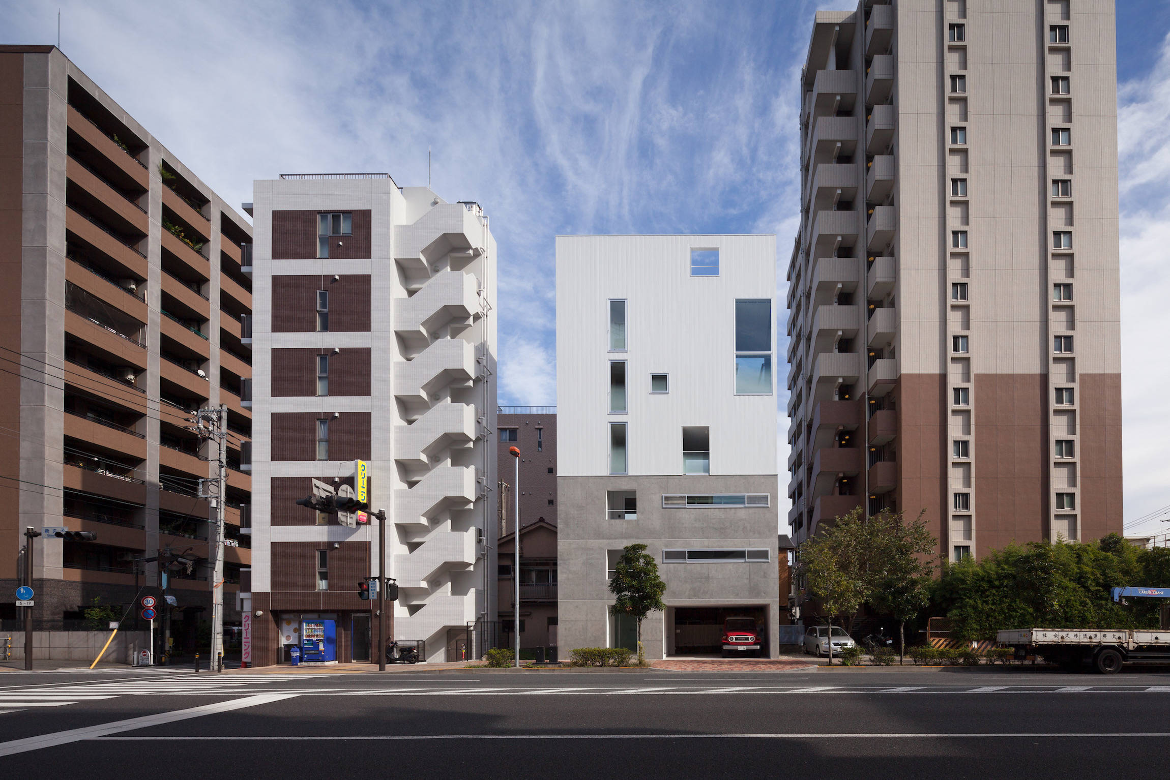 RC造と鉄骨による2段構造によって、中高層マンションが建ち並ぶ街並に変化を与え、開口の抜けや大きさを調整することで周辺の重箱を重ねたような単調で画一的な街並みに豊かな表情を提供し、文字通りコンクリートの街並に軽快な風道を確保できればと考えました。