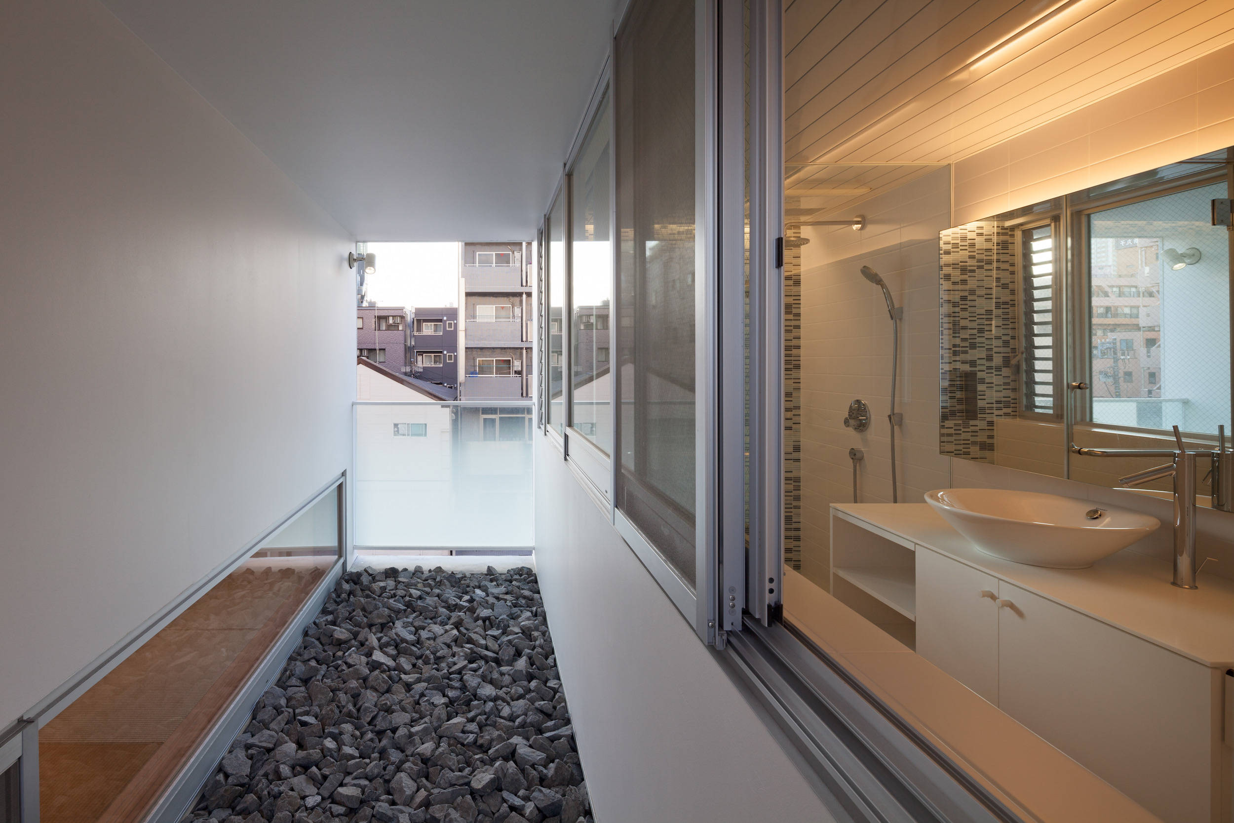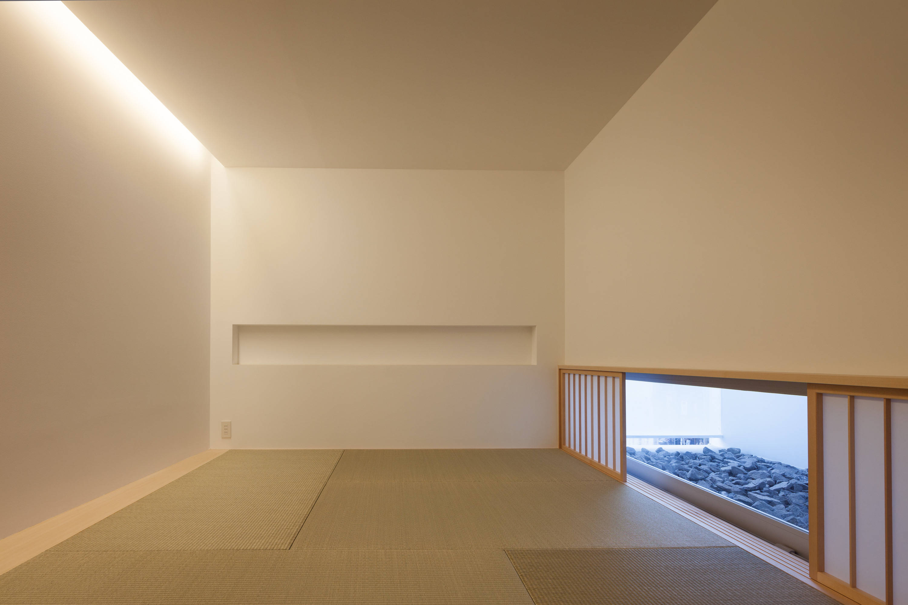 4階には和室を離れとし配置して、建物を貫通する風道をつくり、そこに面する和室と水回りに光と通風を確保しました。