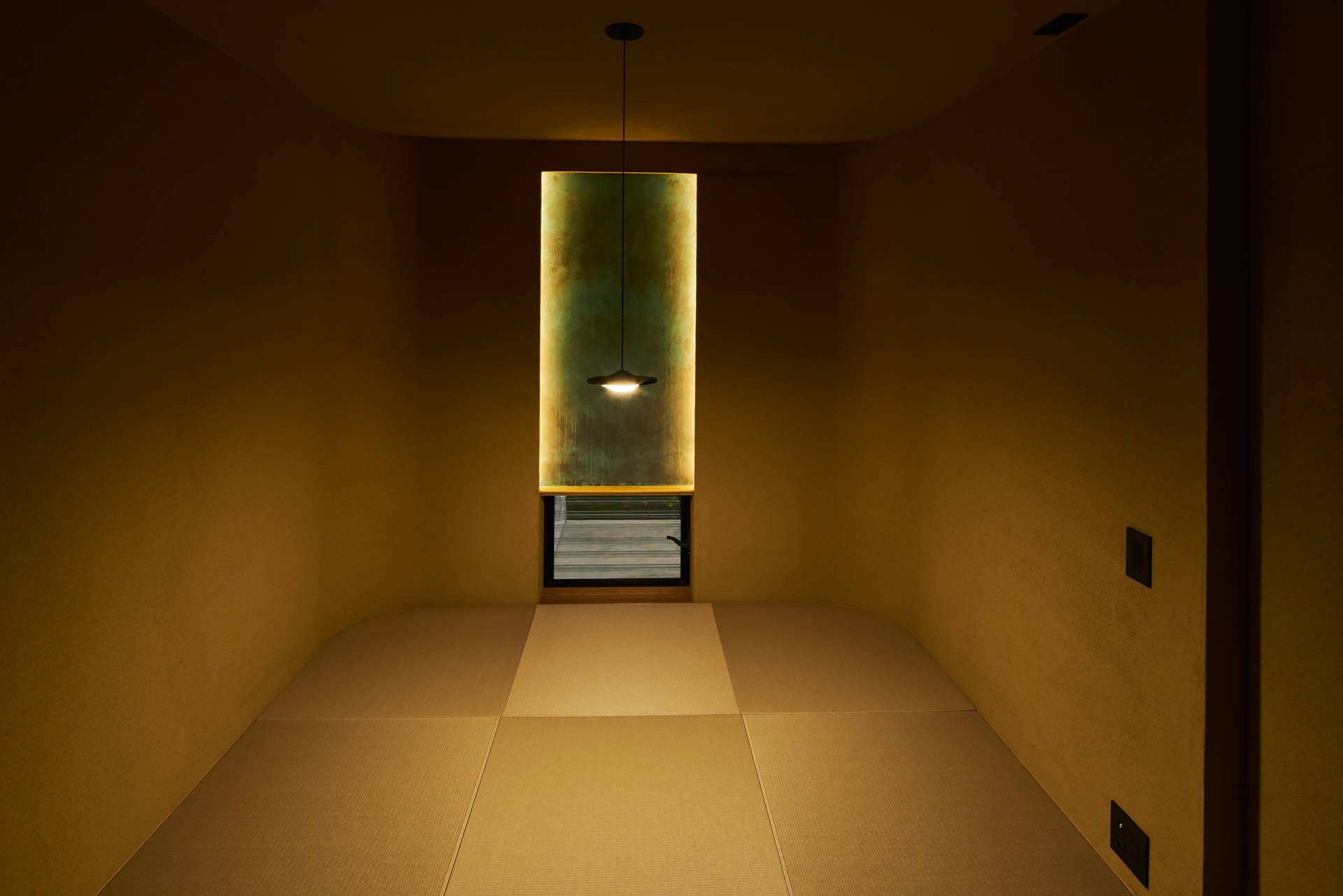 手の温もりを感じていただけるように、壁や天井は土壁を塗り、飾り壁には銅を塗り、他の空間と差別化した趣にしています。木のテイストを取り入れ、カフェのような空間を希望されていたお施主様の意図に叶うように、天井や壁、建具など、うるさくならない程度での設えを施しています。