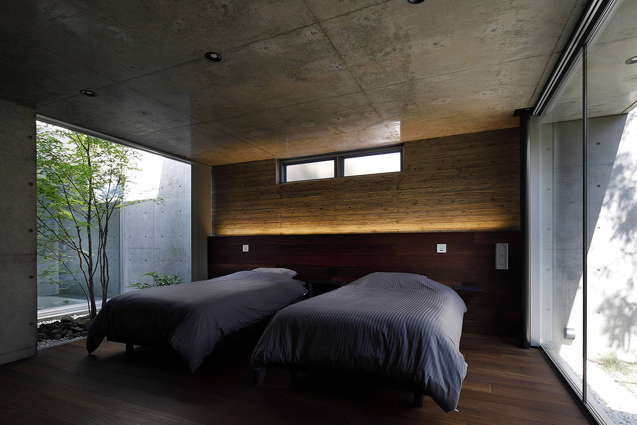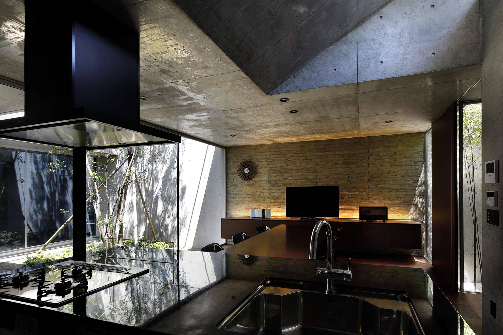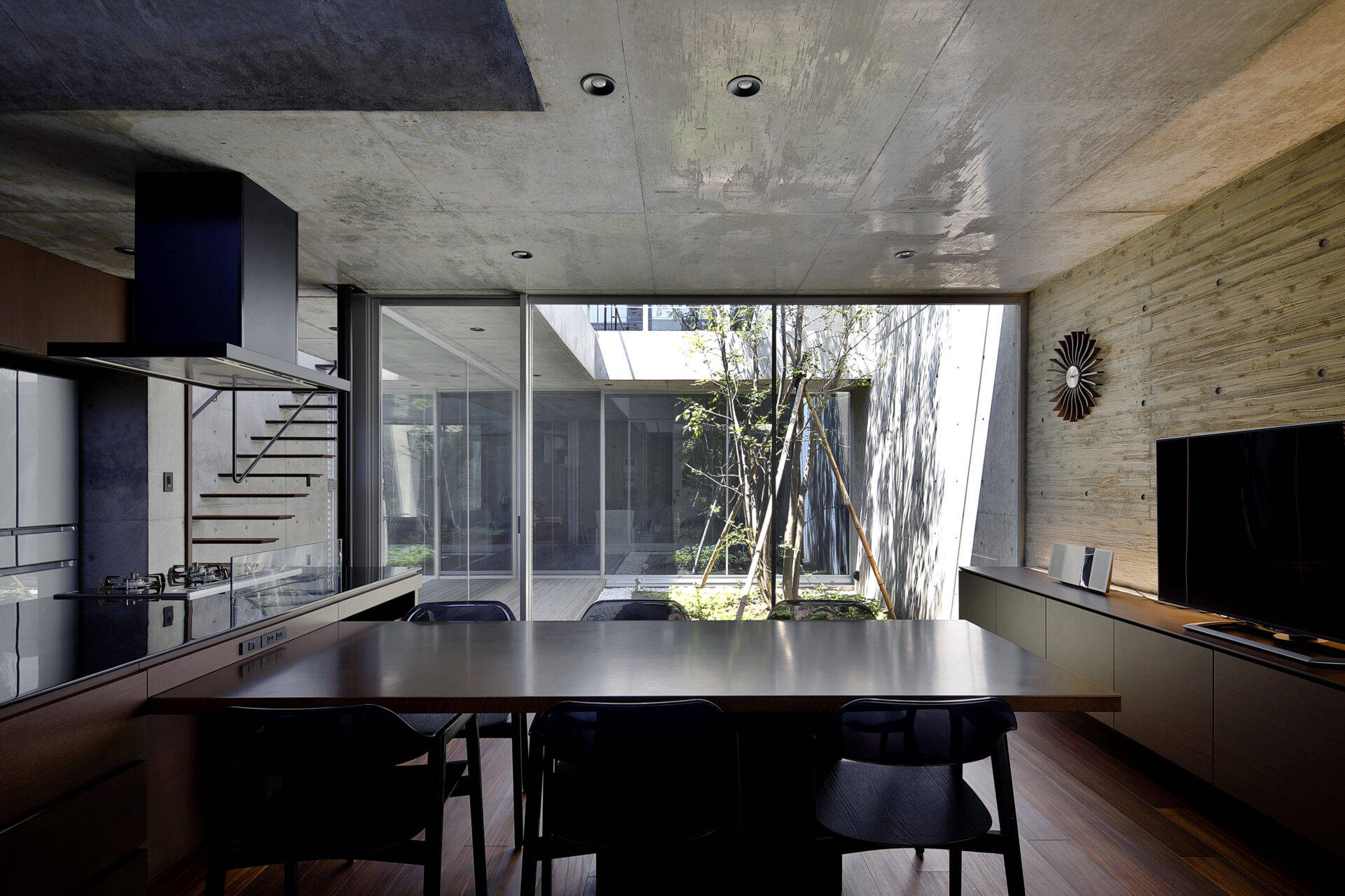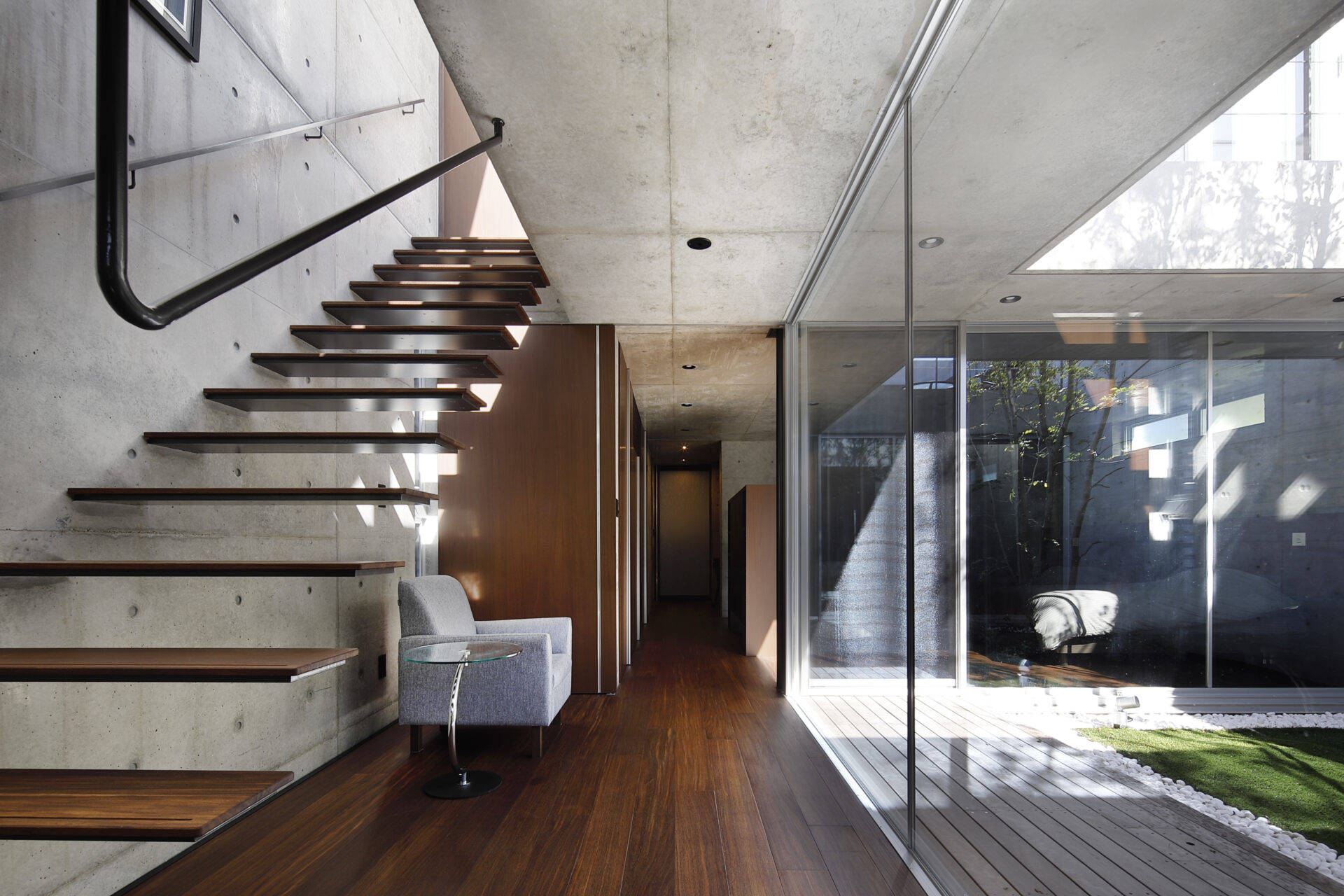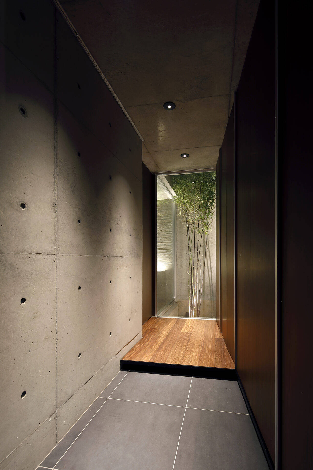 コンクリート、ガラスに包み込まれた、街中に建つ上質なコートハウス。