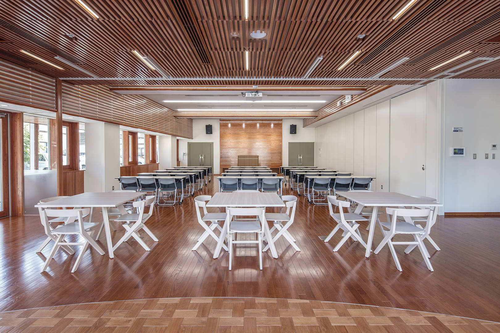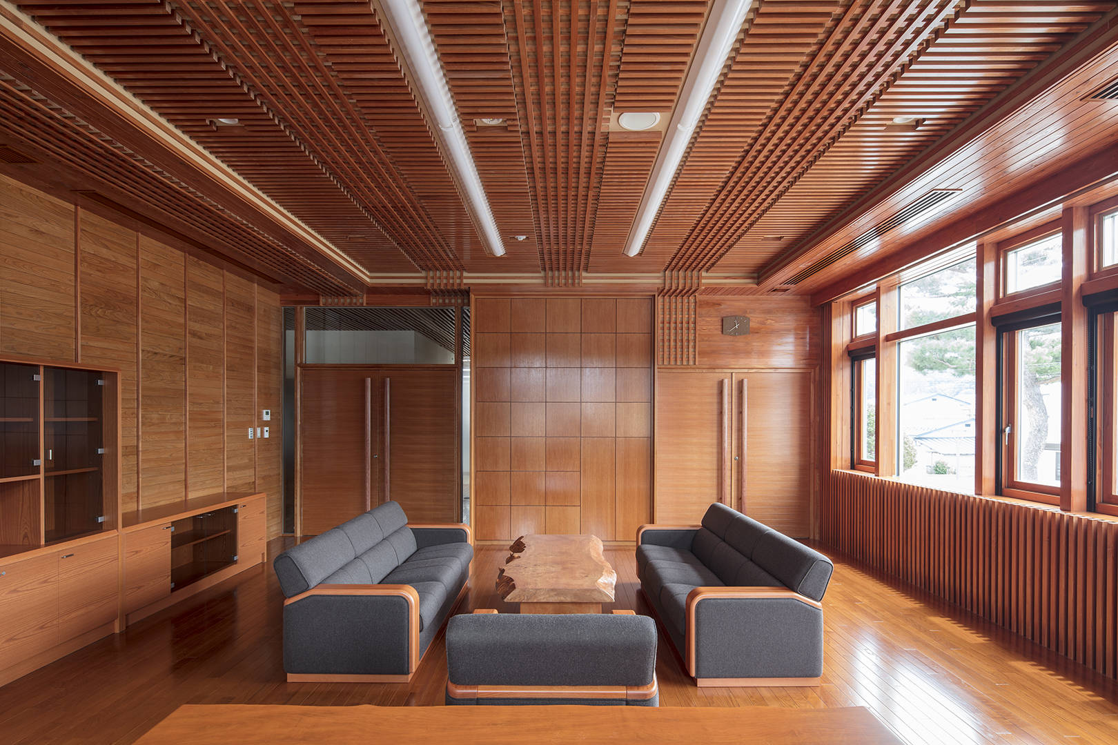 南会津町庁舎は、町民と行政の「協働のまちづくりの実践の場」となることを目指し、町民はもとより町内の施工業者、職人、大工等、地域の力を結集し、皆で作り上げた地産地消の庁舎です。行政の場と町民の活動拠点との間に協働の場を組込むことで、町民と行政のコミュニケーションを喚起する空間構成としました。