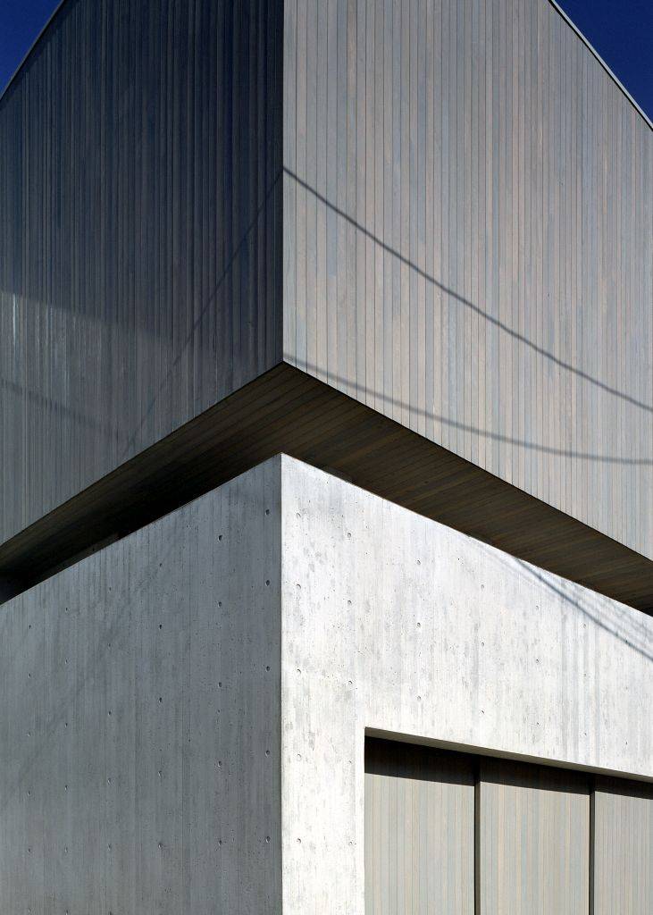 建物を構成する3つの箱は、鉄筋コンクリートや木造とし、外壁の素材や仕上げを変えることで、視覚的にも建物の構成がわかりやすくなるようにしています。
