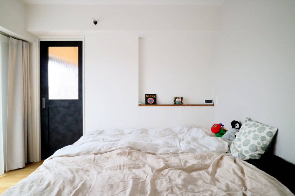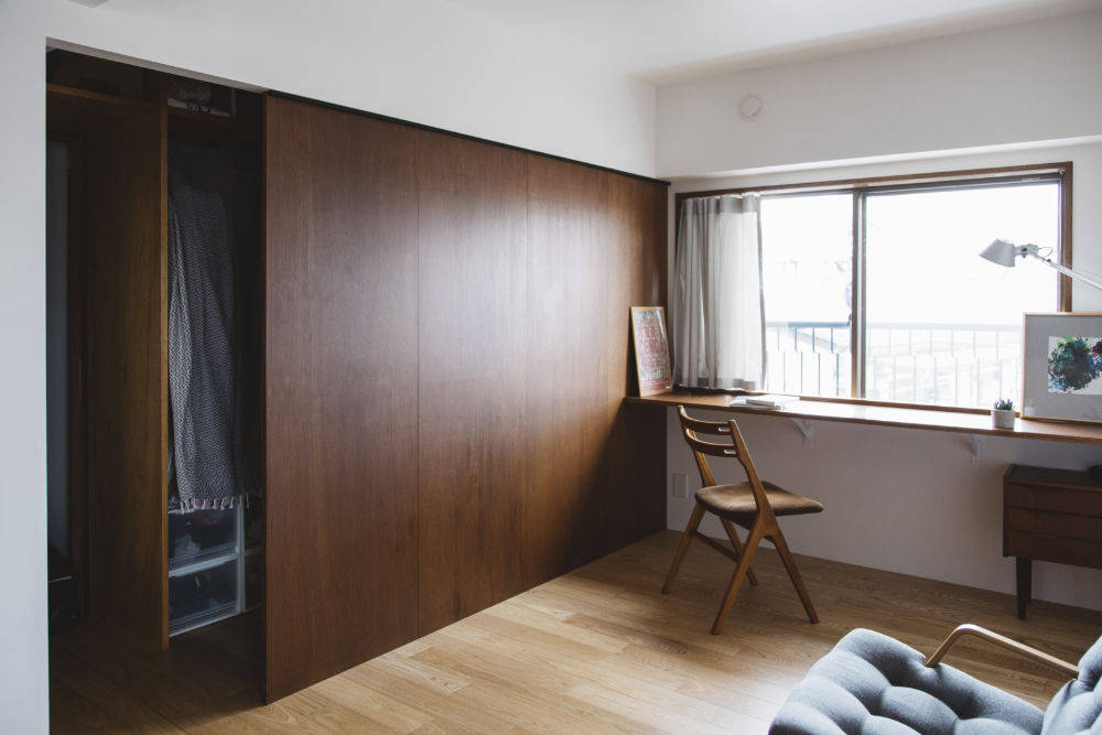 西荻窪に建つマンションのフルスケルトンリノベーション。 以前からこの地域に住んでいた若い家族が住み替えるにあたり、子供の成長や家族構成の変化に伴って変わっていくライフスタイルにどう対応していくかを、基本計画時に打合せを重ね空間構成をしました。 断熱材の施工とコンクリートブロックで間仕切られていた水回りの間取り変更を希望されていたため、フルスケルトンにして全体に断熱材を吹き付け、空間を再構築し、手持ちの家具に合わせて詳細寸法を決定していきました。