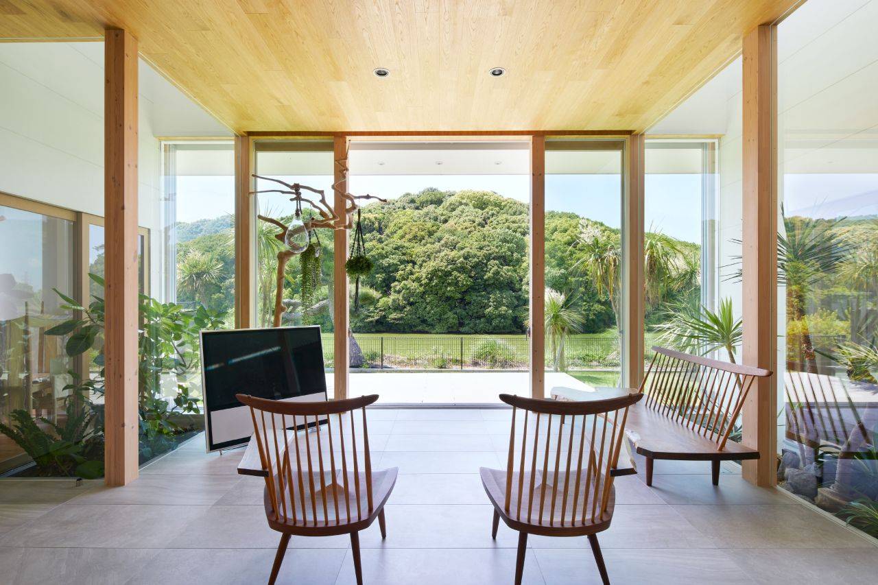 南国のリゾートが好きな建築主の方で、景色を楽しみながら日々の生活が過ごせるような敷地を、数年間掛けて探し出したとのことです。