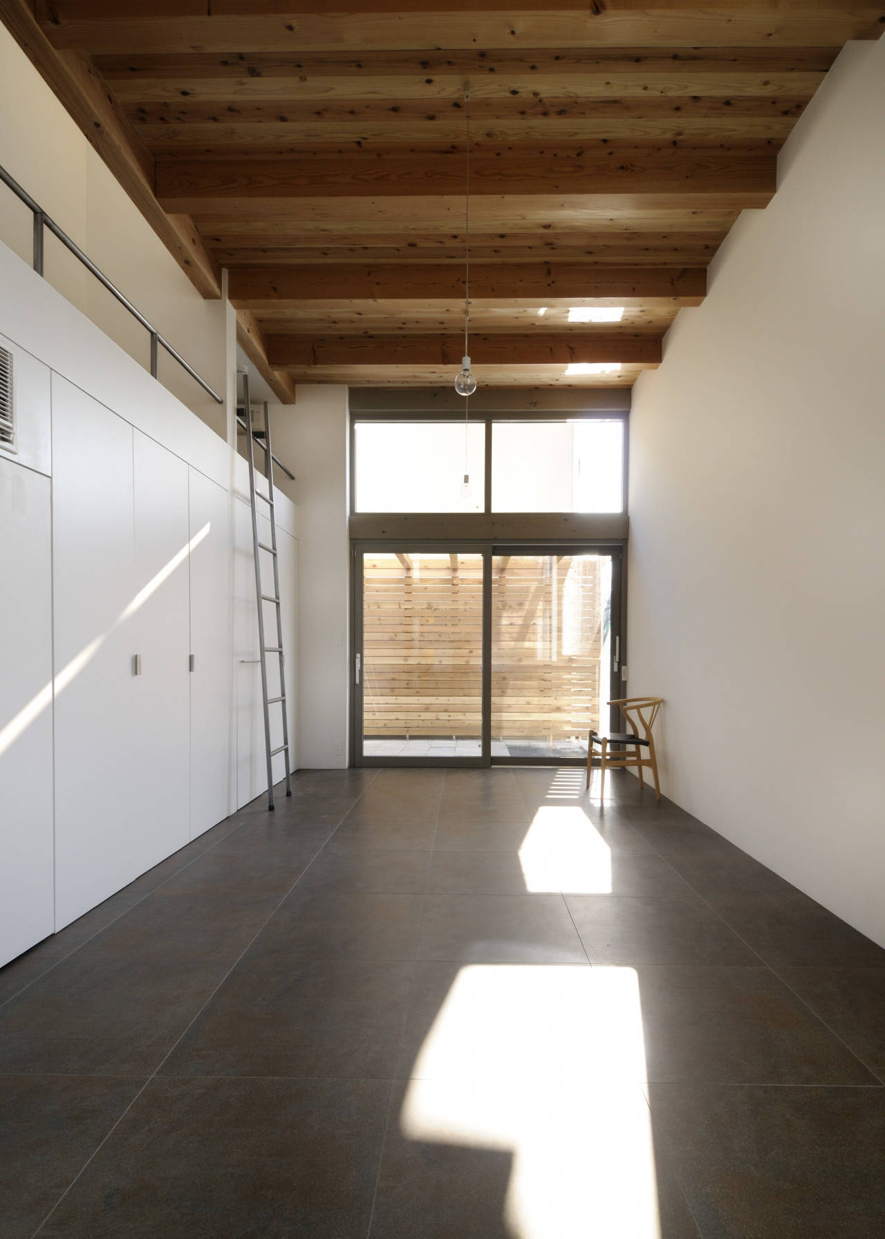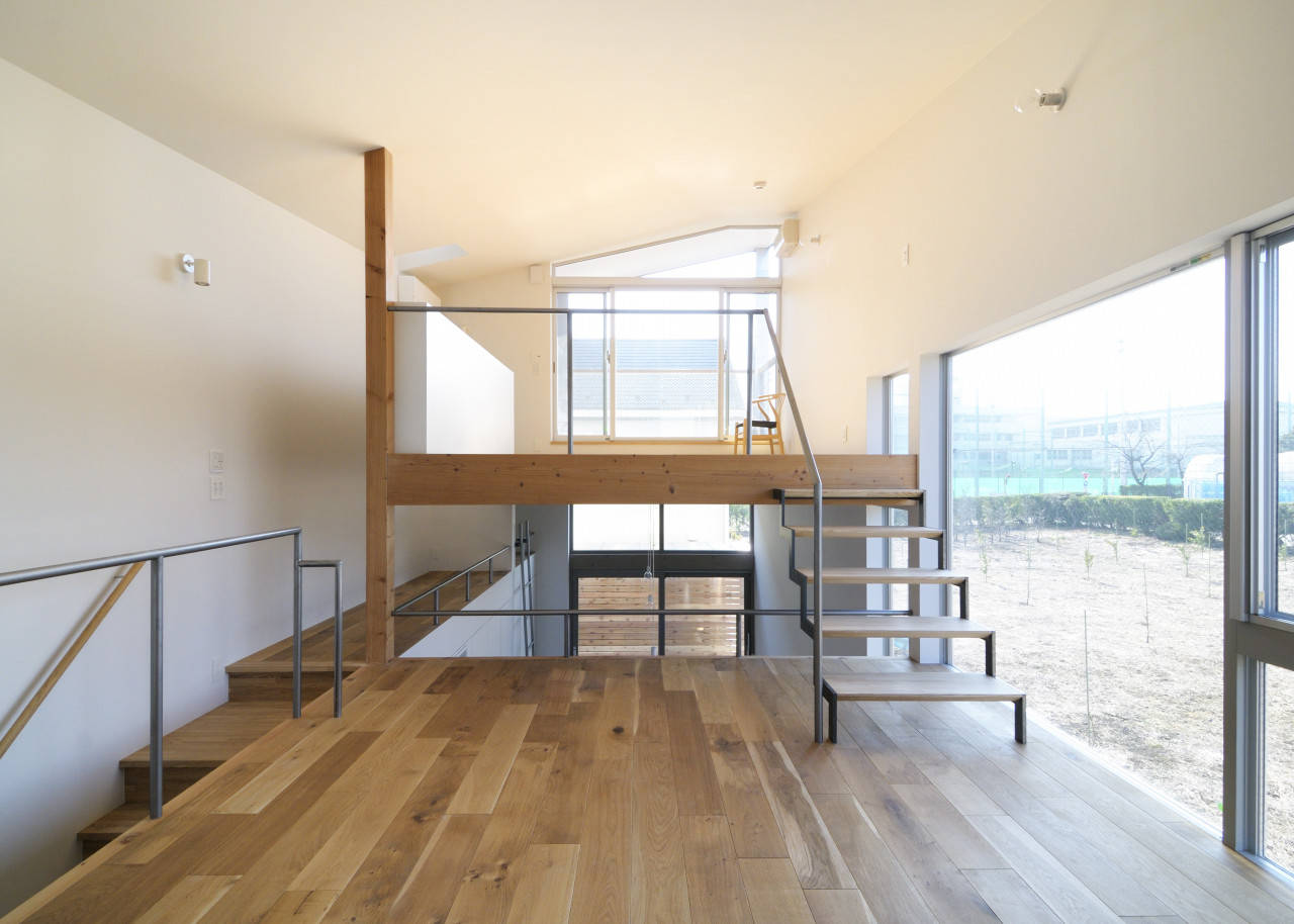 ひとつづきの空間に3つのレベルの床を内包した、箱船のようなすまいです。