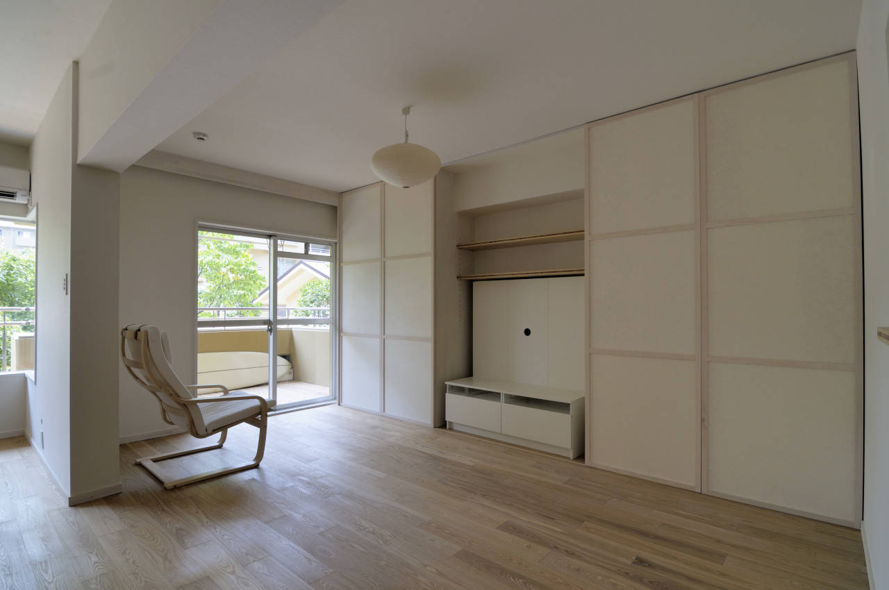 閉鎖的な3LDKの間取りを、風の流れや動線の通りの良いプランニングに変更。