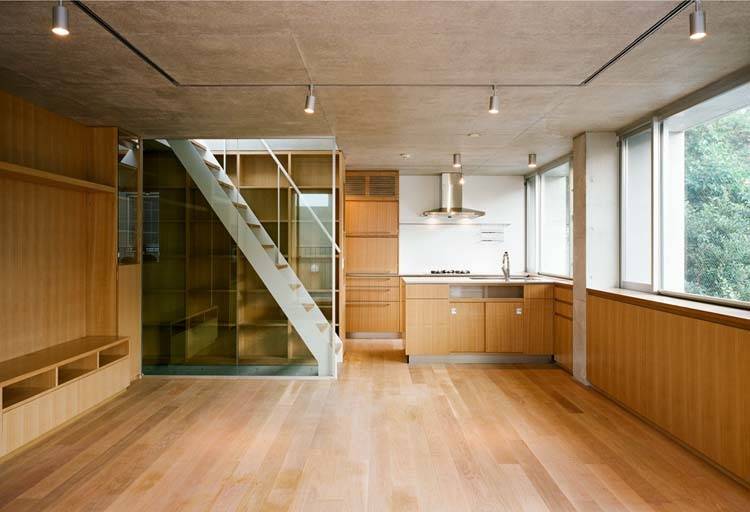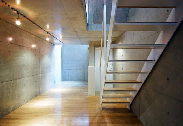 住宅地と商業地のちょうど間の立地の為、サロンや事務所としても利用出来るよう、コンクリート打ち放しの仕上げやステンレスの什器などでニュートラルな空間としている。