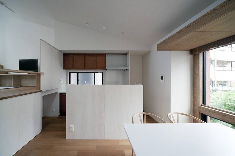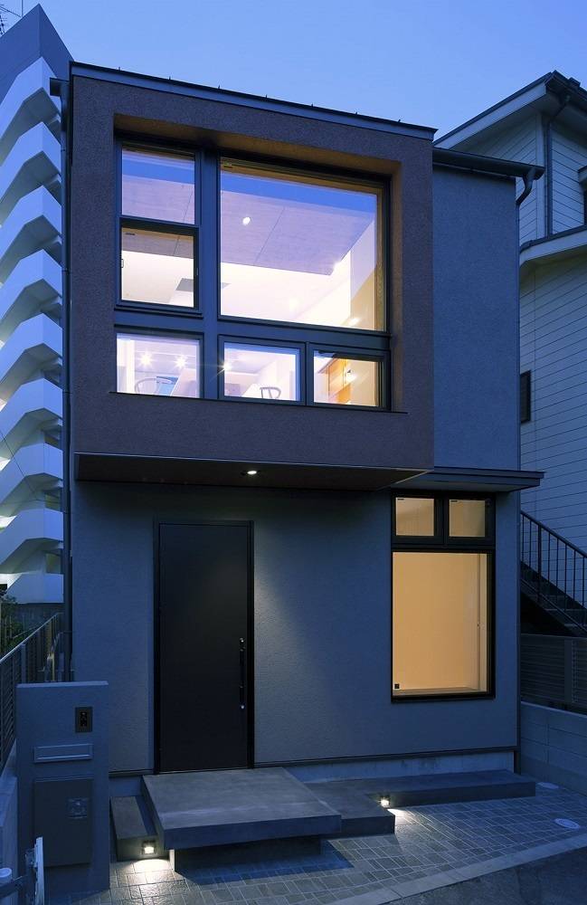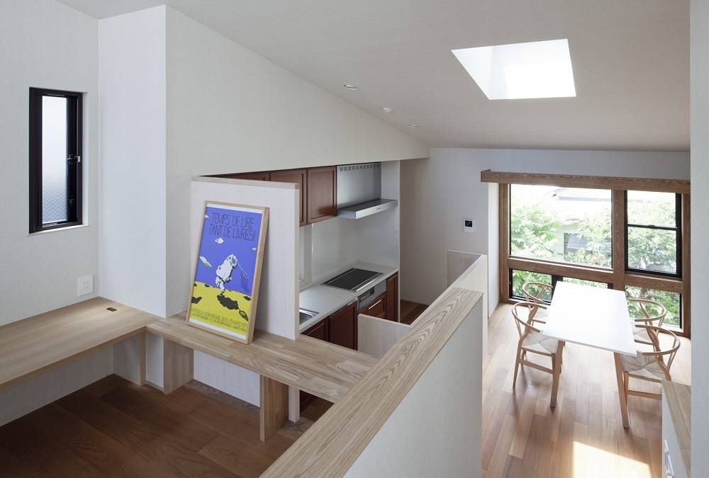 福岡市の中心部に建つ専用住宅。都心に住みながらも周辺の喧騒を忘れ、ゆっくりとした静かな時間が流れる、そんな居場所ができました。プライバシーを守りながら外部とつながっていける設計と、スキップフロアを用いて空間を最大限に利用した変化とリズムのある空間が特徴です。