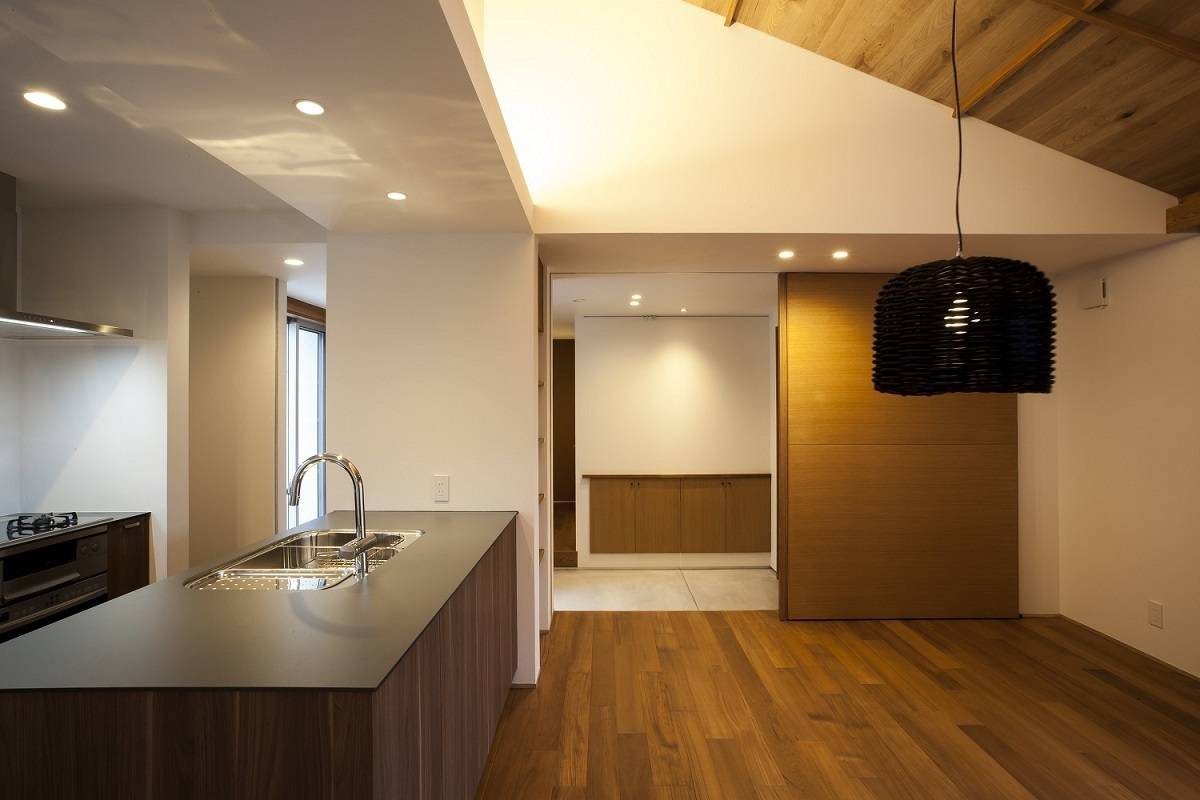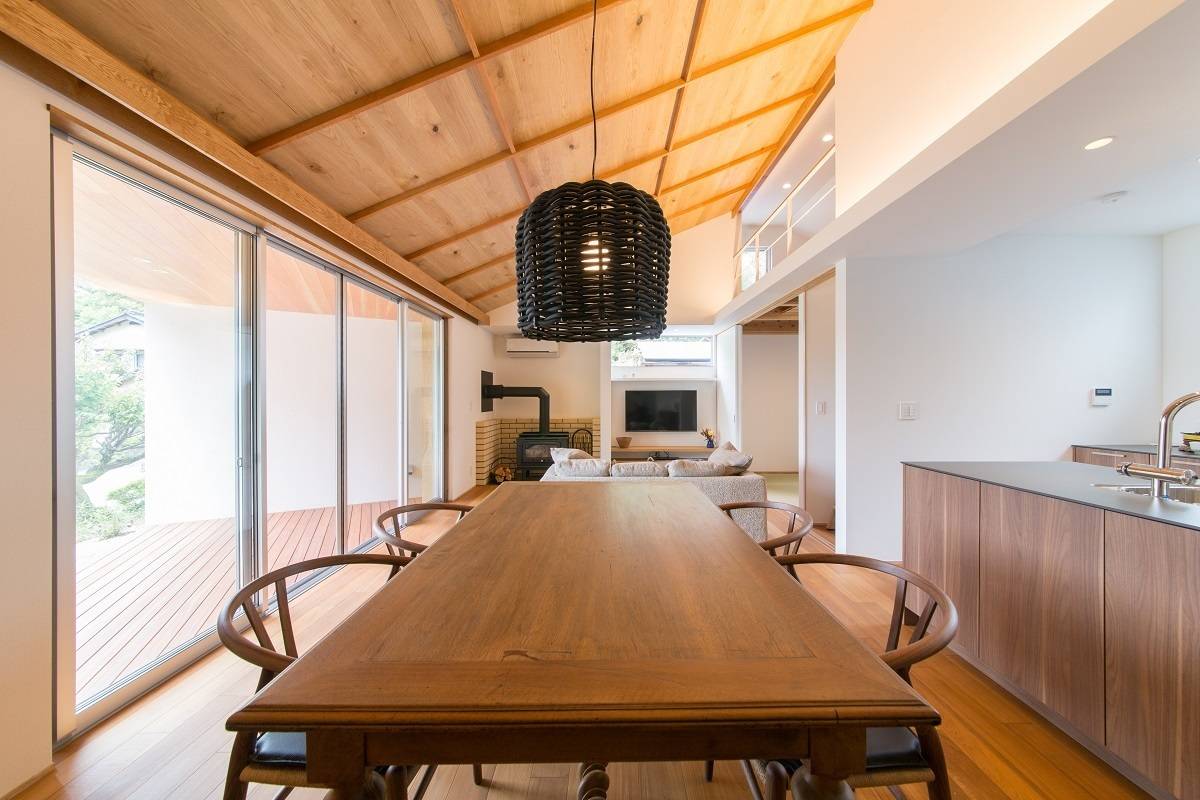 鳥栖市内の雑木林の脇にひっそりと佇む25坪程の週末住宅。休日には果樹や畑などの庭仕事を楽しみ、人々がそこに集い、収穫したものを分け合う。そんなシンプルな行為を積み込み、四季の変化や、太陽の光、風の音、木々の緑、雨の音、土のにおい、ストーブの火・・・・など自然を五感で感じることができる森の家です。周辺環境の山々の風景に自然に溶け込める様に建物を分棟型として一つ一つの建物ボリュームを小さく見せる様に計画し、それぞれの棟を土間空間で繋げた形状です。