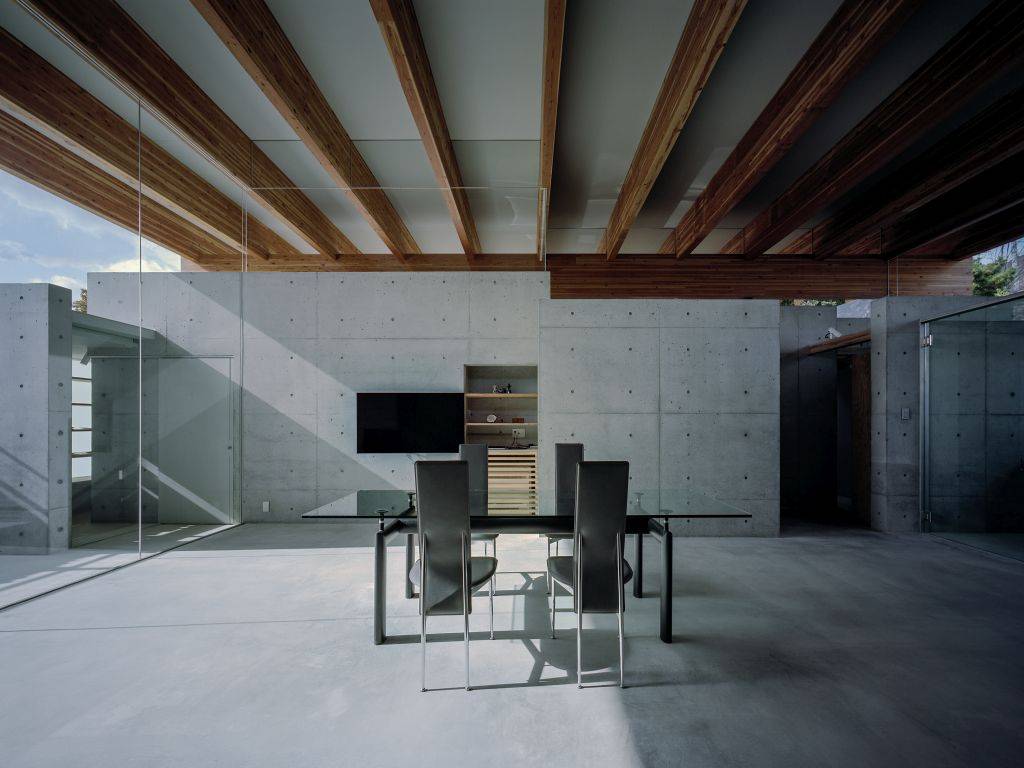 そこで、この住宅では各要素を構成するコンクリートや、鉄、ステンレス、木、合板、ガラス、石といった素材そのものを仕上げとして用いています。これにより、空間の抽象性と素材の具象性が互いを引き立たせ、静かでありながら情感豊かな空間となっています。