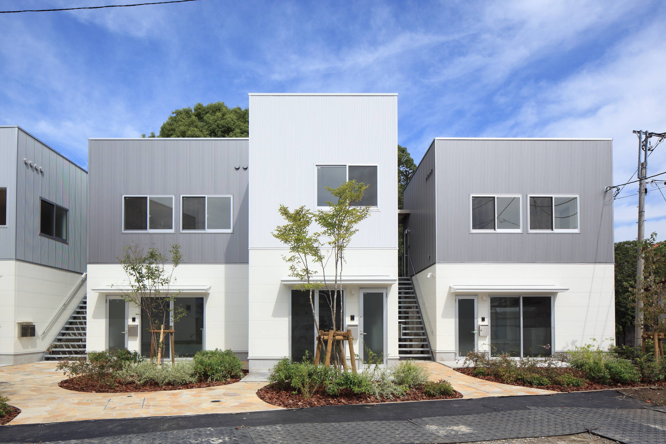隣地のお寺の大きな緑を教授し、延長し、敷地を公園に見立て、アパートが公園の中に建っているような風景を目指しました。