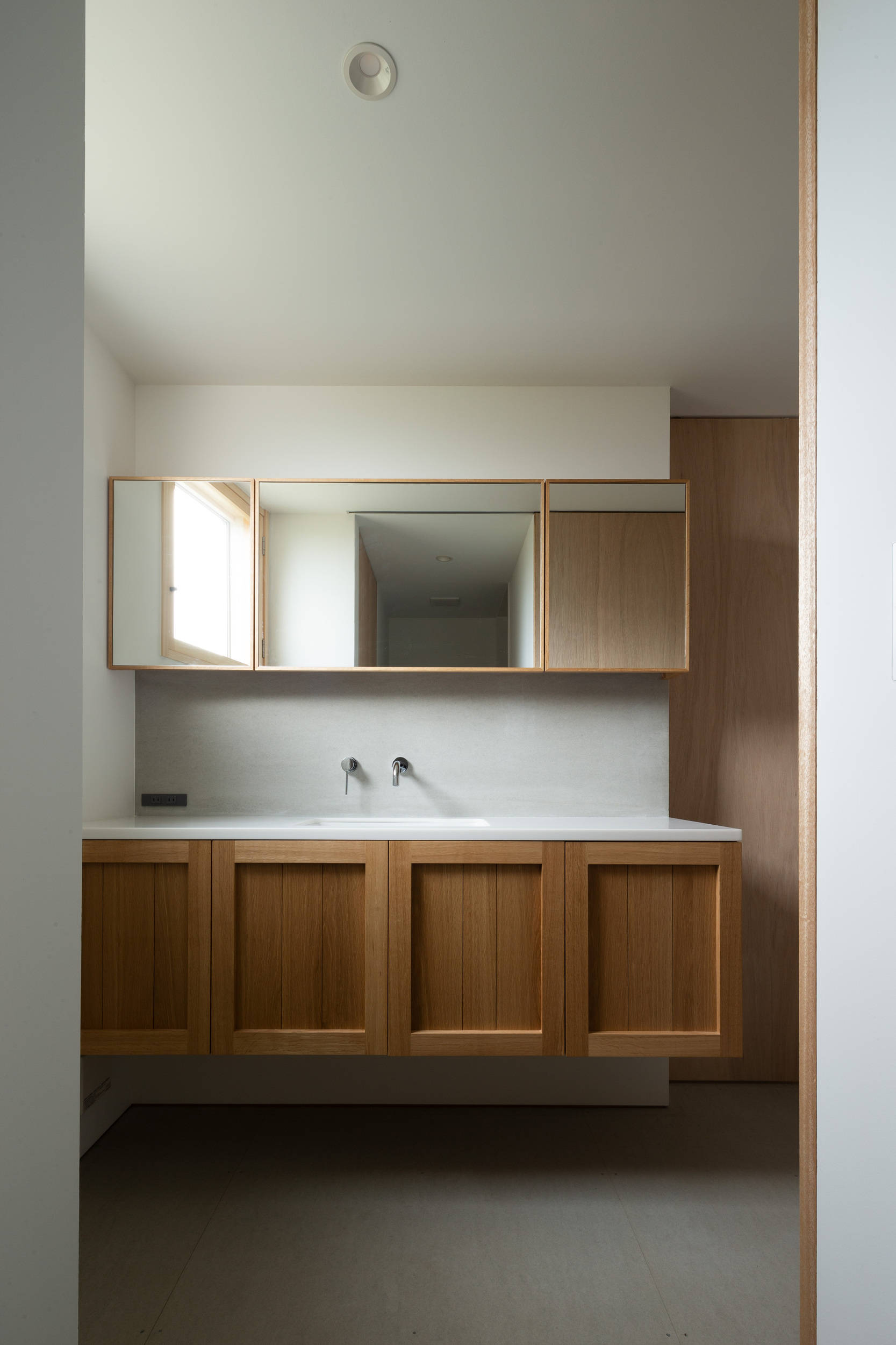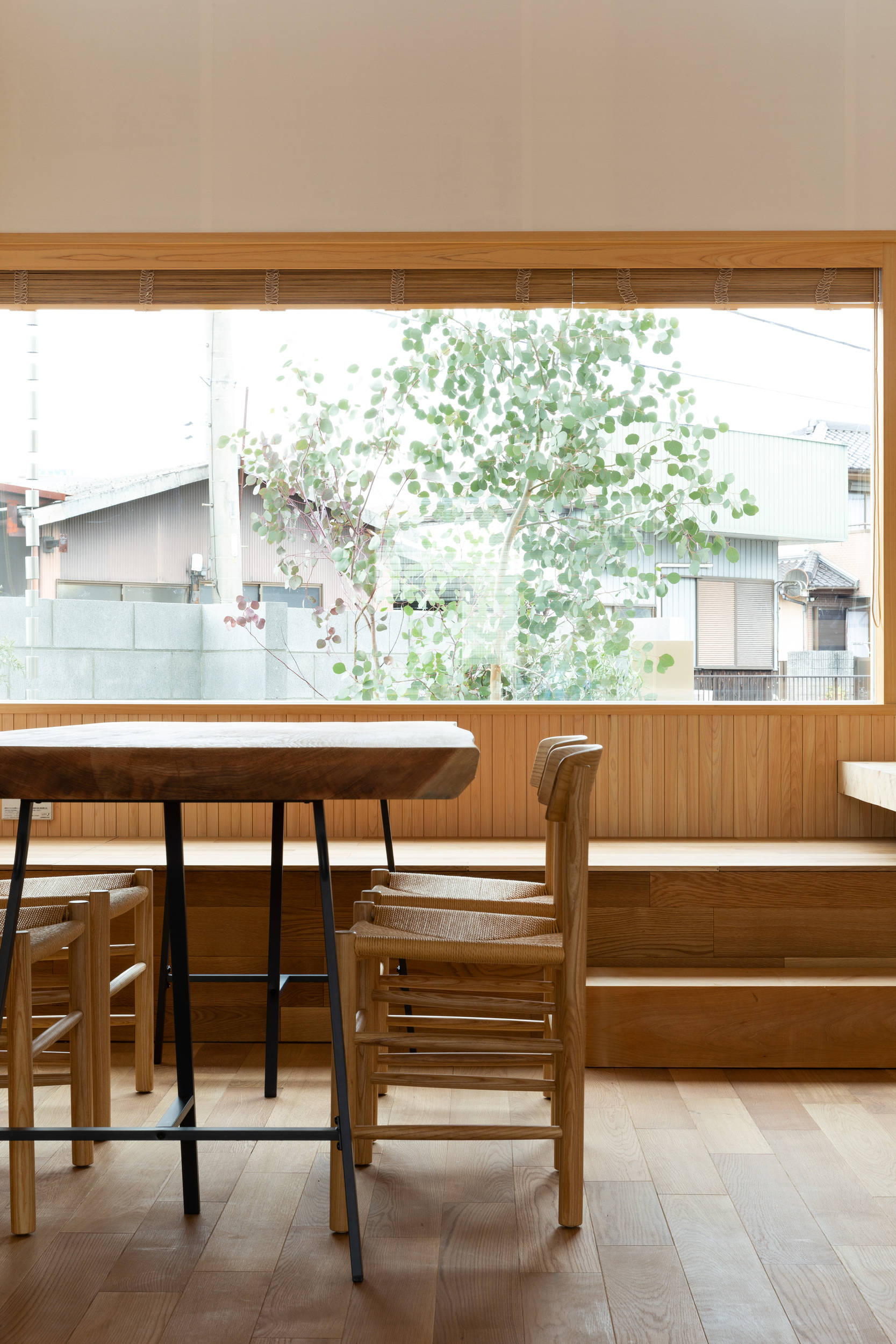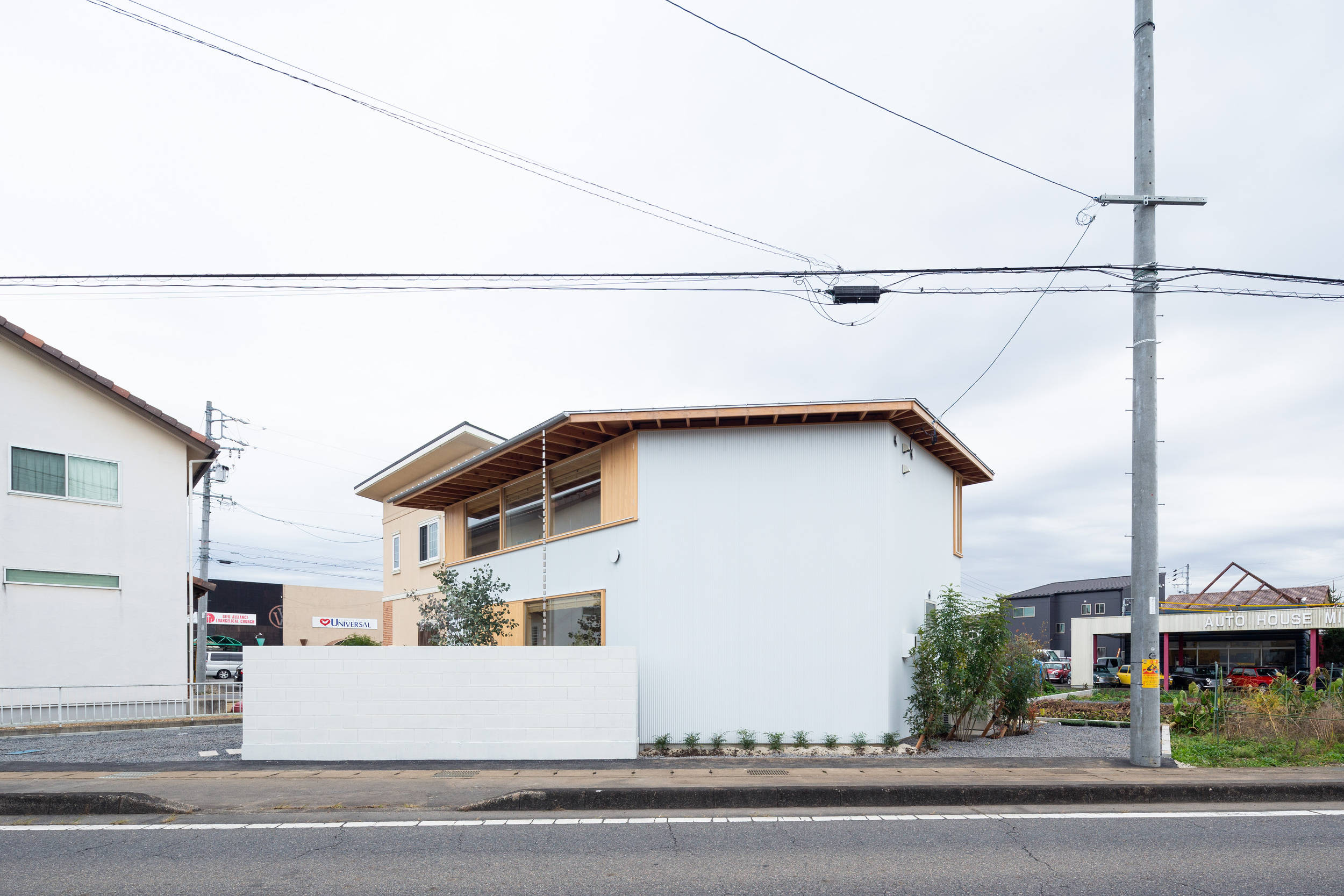 岐阜県可児市にある夫婦と子供2人の為の一戸建て住宅の計画である。「朝起きて思わず背伸びをしたくなるような明るく気持ちのいい場所を作って欲しい」と要望があった。日本有数の猛暑の地域であるこの場所で、いかにして心地よい光空間を実現するかが計画の主眼となった。 ここでは開口部を南北面に絞りリビングダイニングそれぞれに吹き抜けを設けた構成とすることで、北からの朝日が夏の訪れを、南からの光が冬の訪れを知らせてくれる光環境となるように設計している。