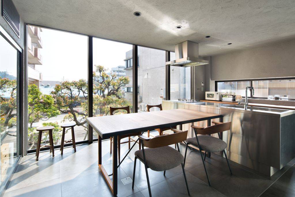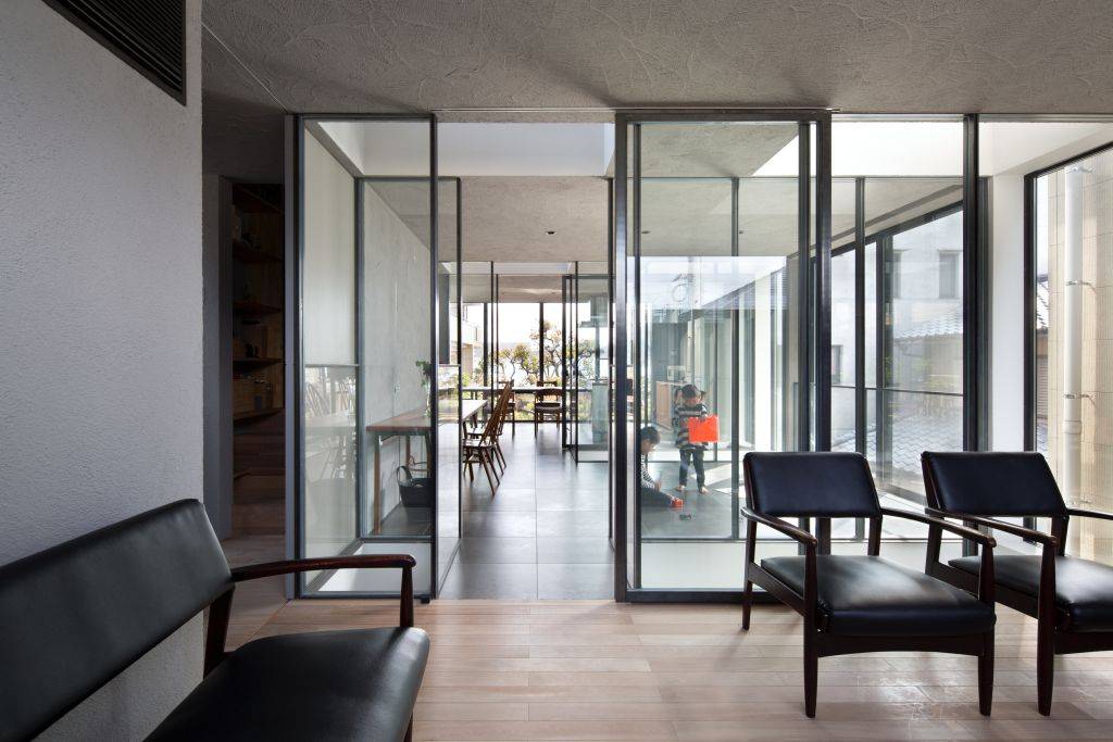 2階には皆が利用できるLDK。3階には孫夫婦の個室があります。皆が集まるLDKは、間仕切りをガラスとすることで、より広がりを感じる空間にしています。